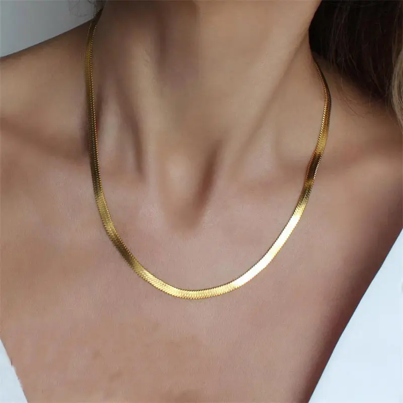 Короткая Цепочка-чокер из чистого золота 24 карата в елочку, ожерелья для женщин, минималистичное золотое ожерелье-цепочка, змея, раннее ювелирное изделие