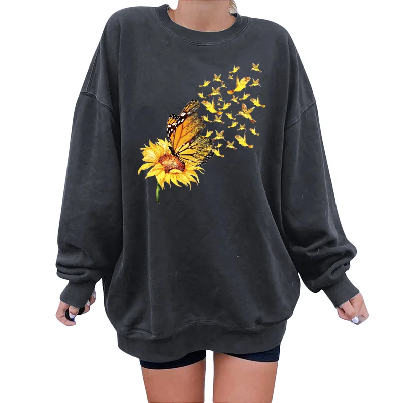 PatternSunflower Butterfly Printing Women Sweatshirts