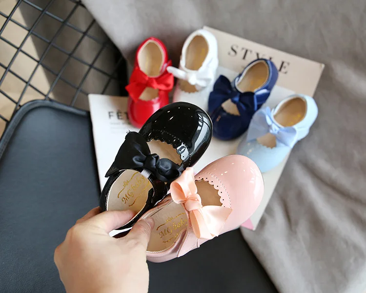 Туфли Детские демисезонные из лакированной кожи, с бантом, однотонные