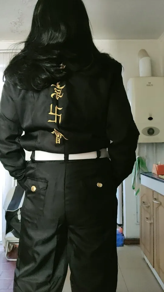 Все хорошо, единственная проблема-парик, у него есть несколько входов, вы должны стилизовать челку, чтобы приспособить ее больше к Baji, остальное в порядке, ткань не очень толстая или тонкая, куртка имеет подкладку, поставляется со многими свободными нитями, я измеряю 1,74, вес 63 кг, Я заказал L, и я немного туго, я рекомендую XL или больше для мужчин