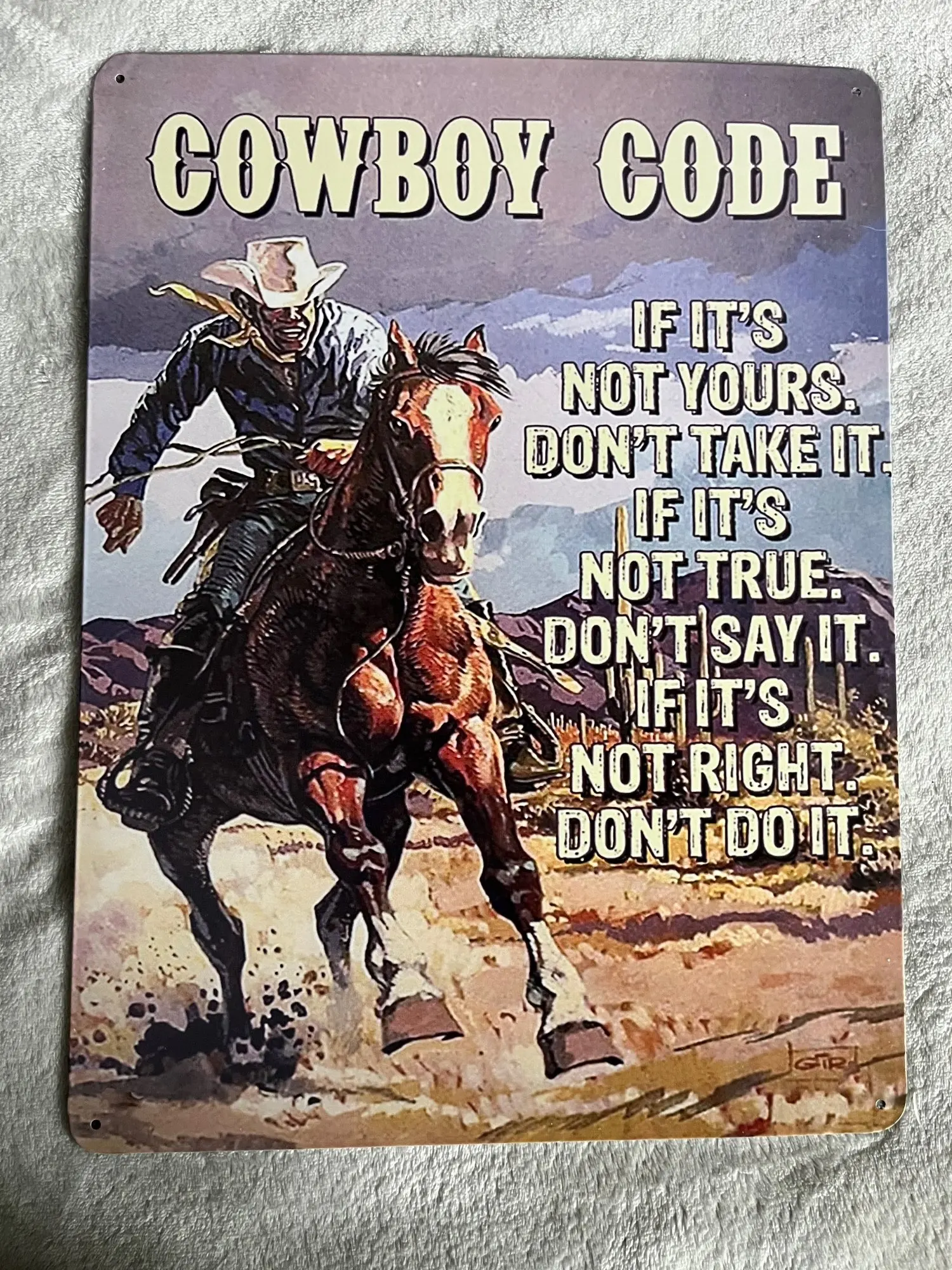 Ковбойская жестяная винтажная табличка, винтажные металлические жес...