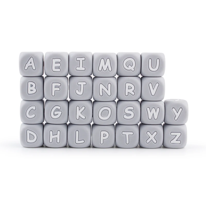 2640150 шт. 12 мм Силиконовые буквы бусины Английский алфавит персонализированное имя сделай сам грызунок ожерелье аксессуары для детского прорезывателя