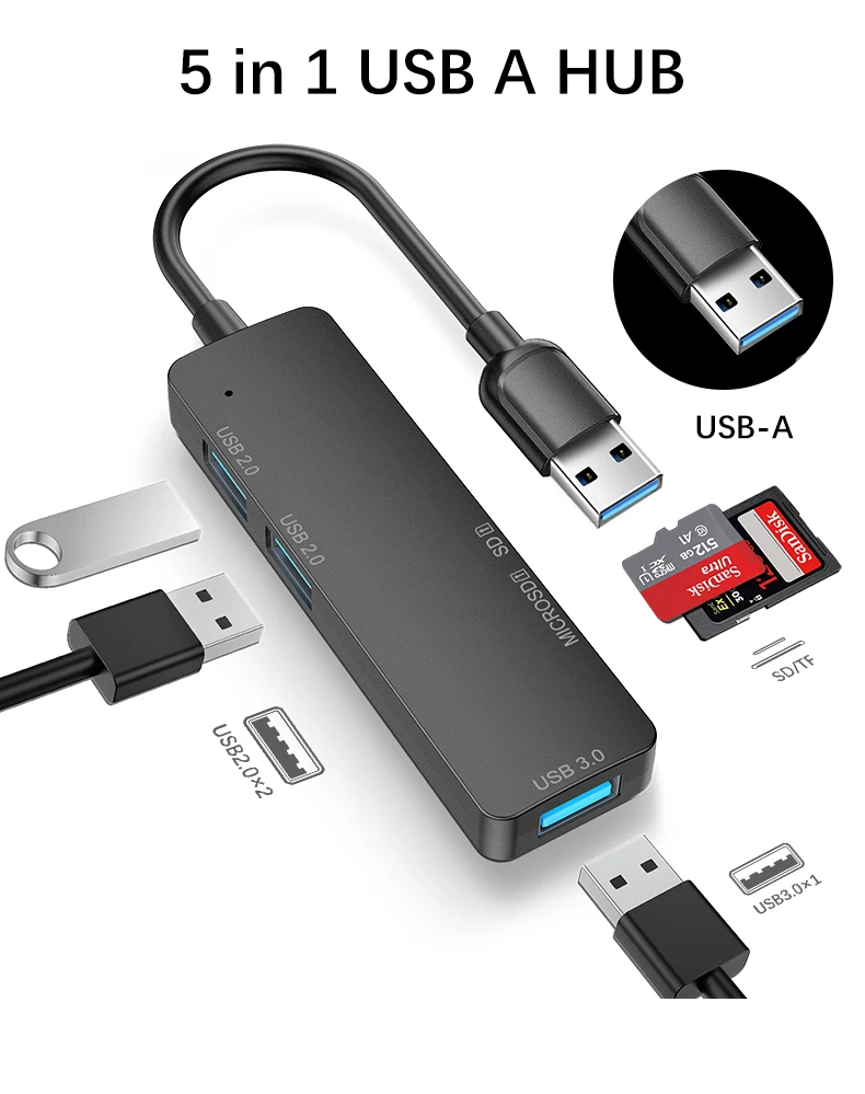 USB-концентратор CABLETIME 5 в 1, USB 3,0, 5 Гбитс, для быстрой передачи данных, кардридера SD, TF, для ноутбука, Dell, Lenovo, ASUS H26
