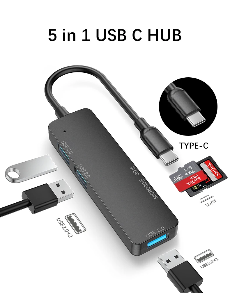 Кабель 5 в 1 usb-хаб Type C для SD TF Card Reader USB 3,0 5 Гбитс п...