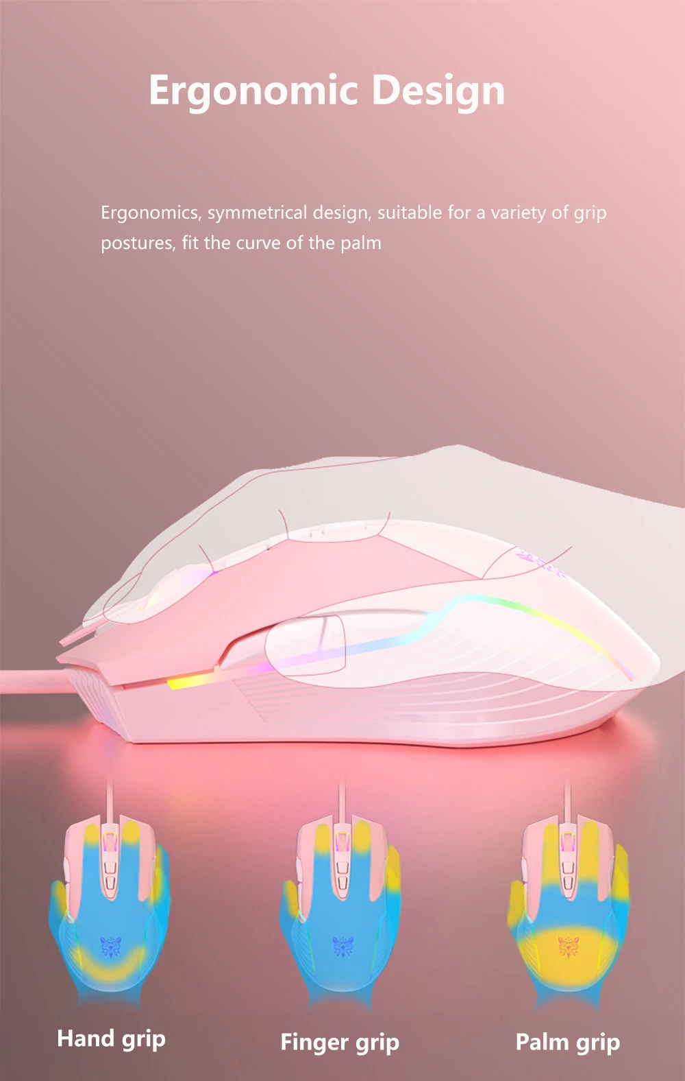 Проводная игровая мышь ONIKUMA CW905, USB, 6400 DPI, розовая игрова...