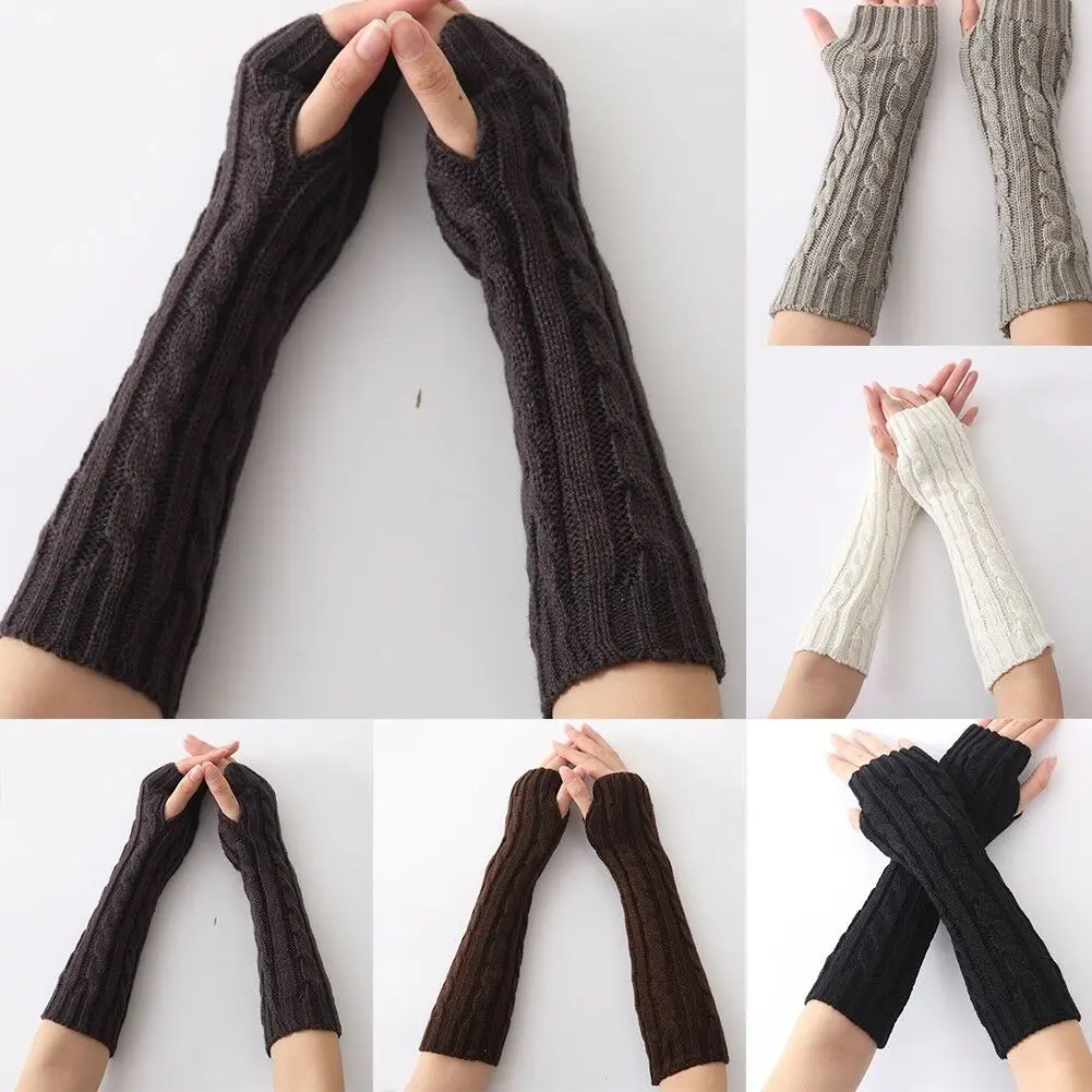 Женские зимние вязаные длинные перчатки без пальцев, мягкие однотон...