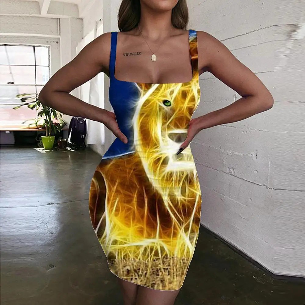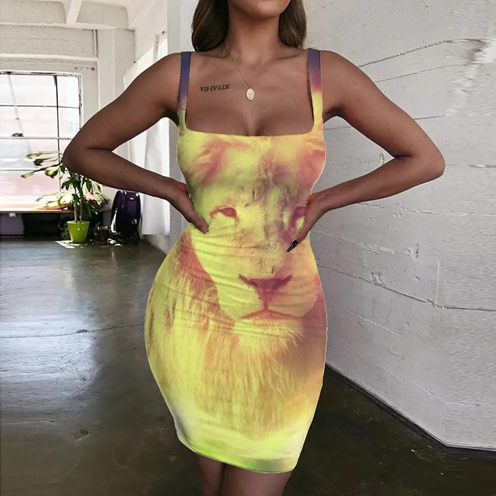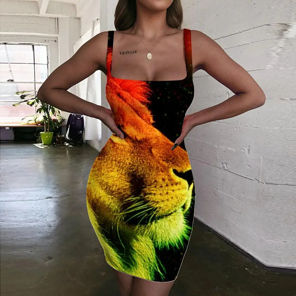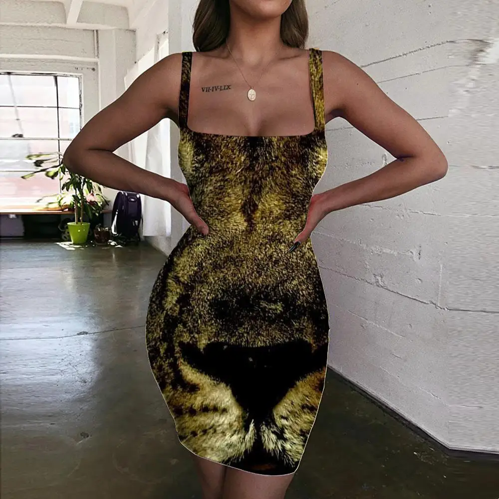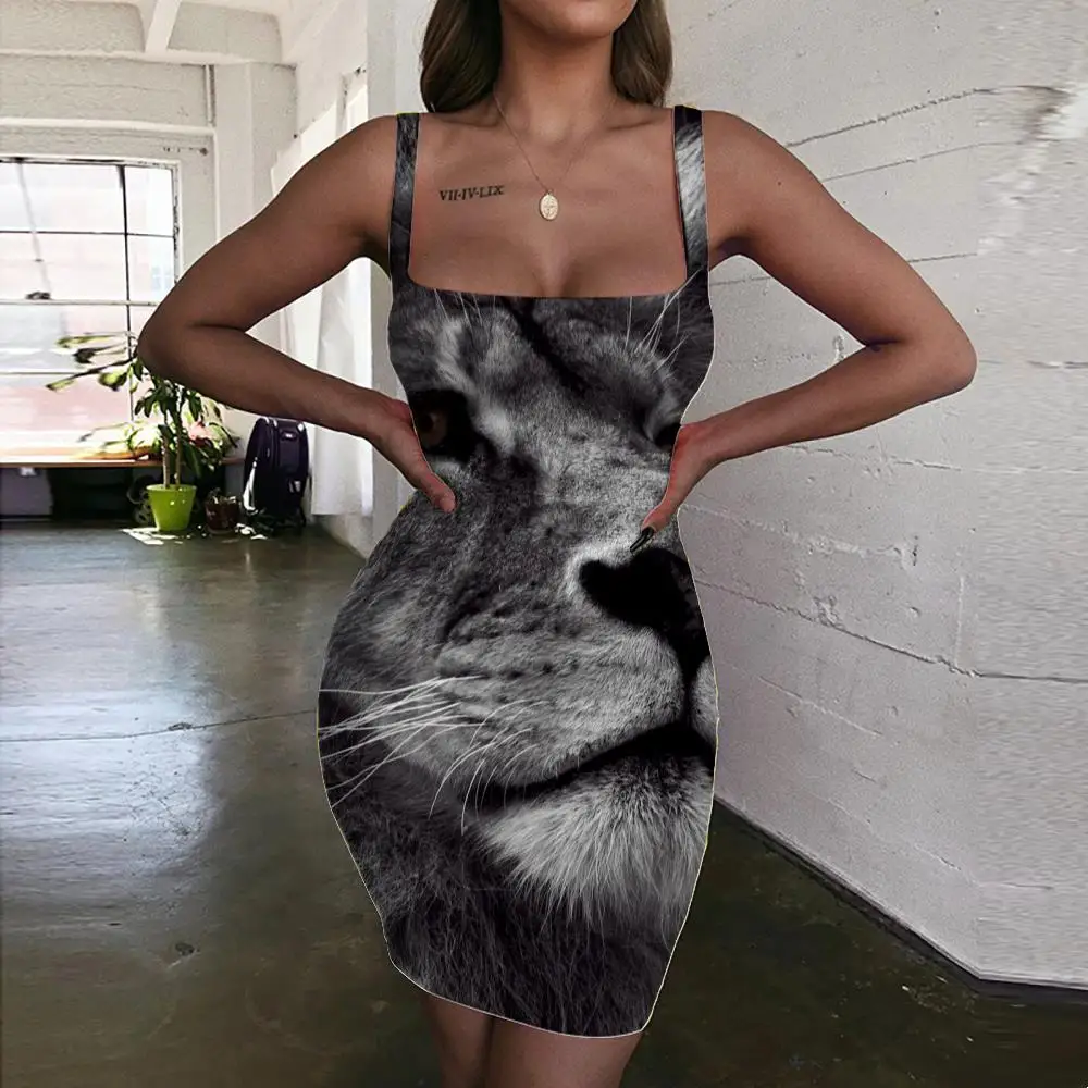 KYKU Лев платья женщин животное облегающее платье аниме с лямкой на...