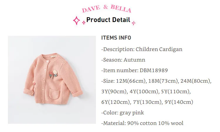 Демисезонный кардиган с цветочным принтом для маленьких девочек, DBM18989