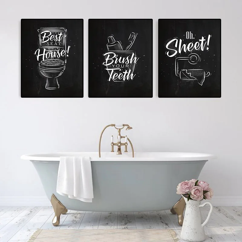 Настенная картина с зубцами в туалете, декор для ванной комнаты, Картина на холсте, художественный плакат, модная черная белая фотография