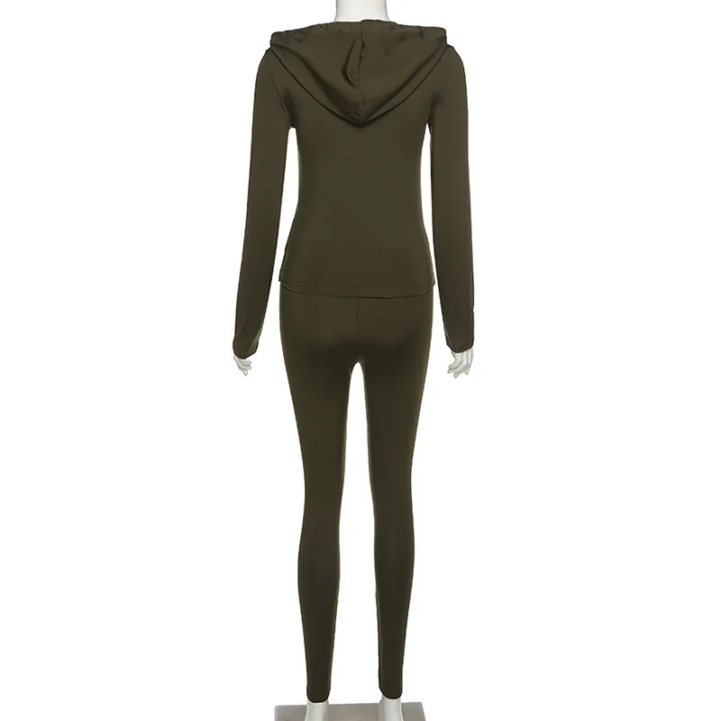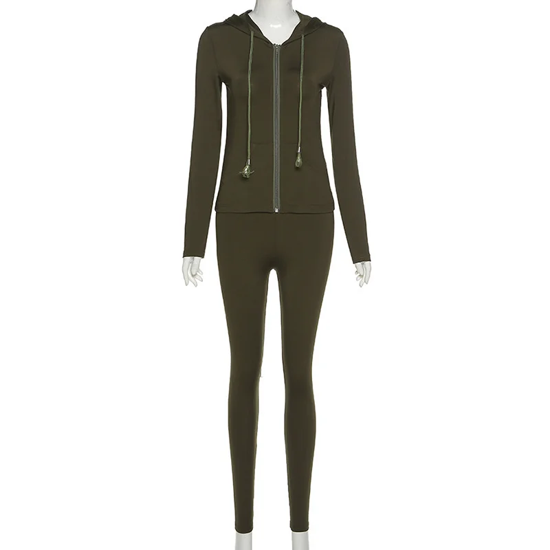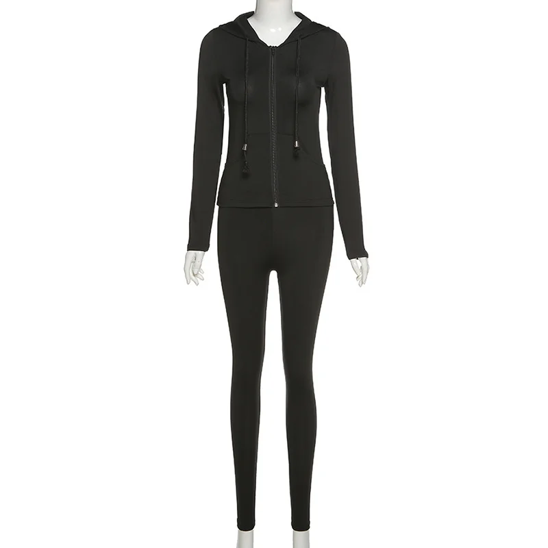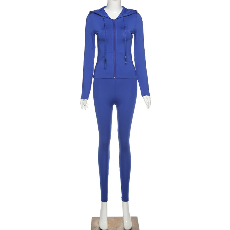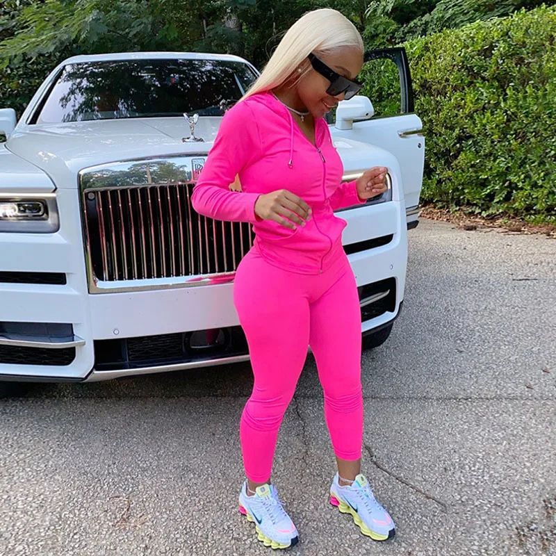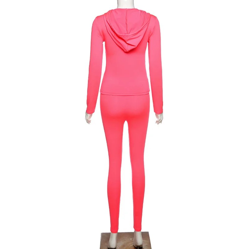 Женский спортивный костюм на молнии с длинным рукавом и капюшоном