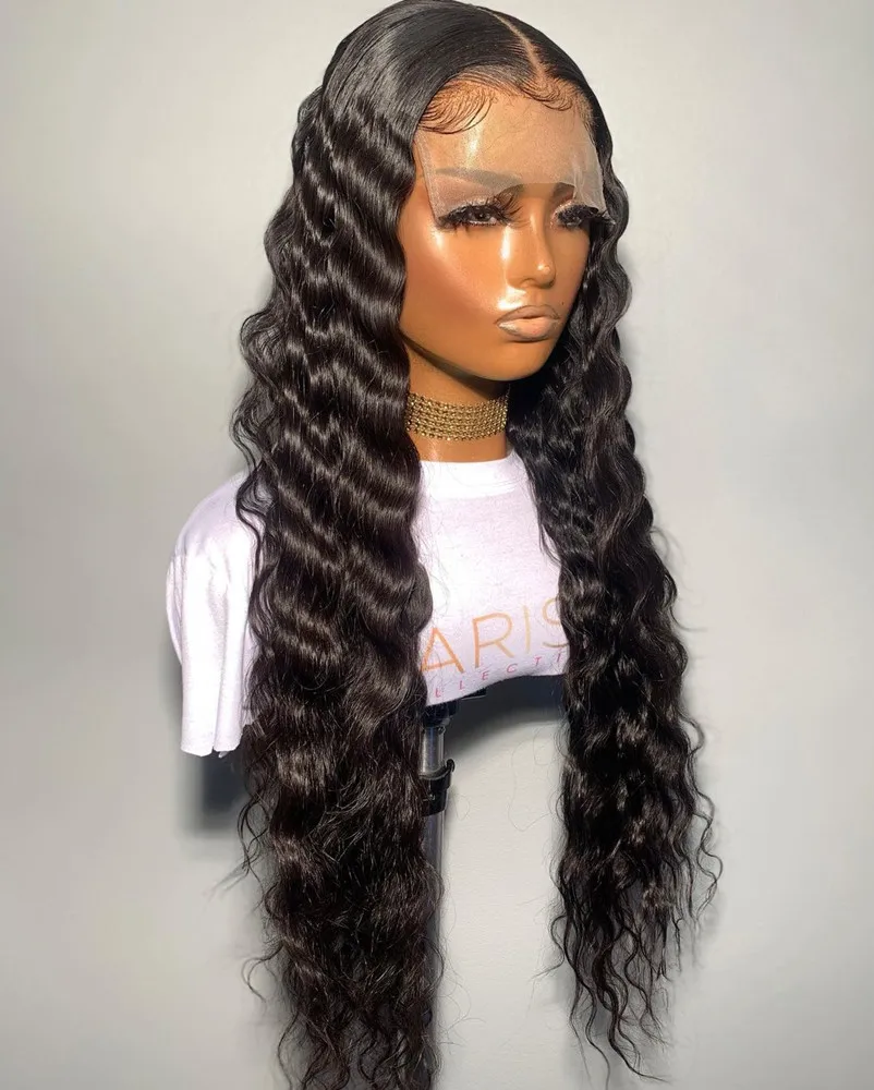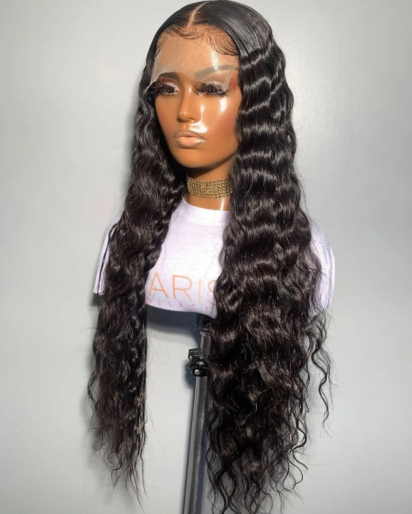 26 дюймовые черные длинные волнистые синтетические кружевные передн...