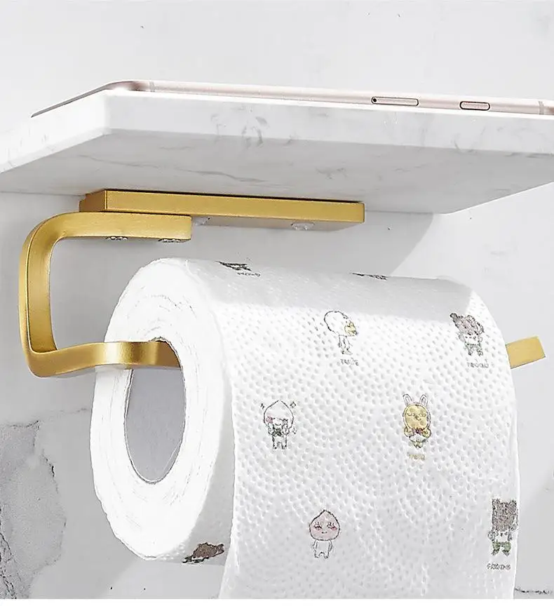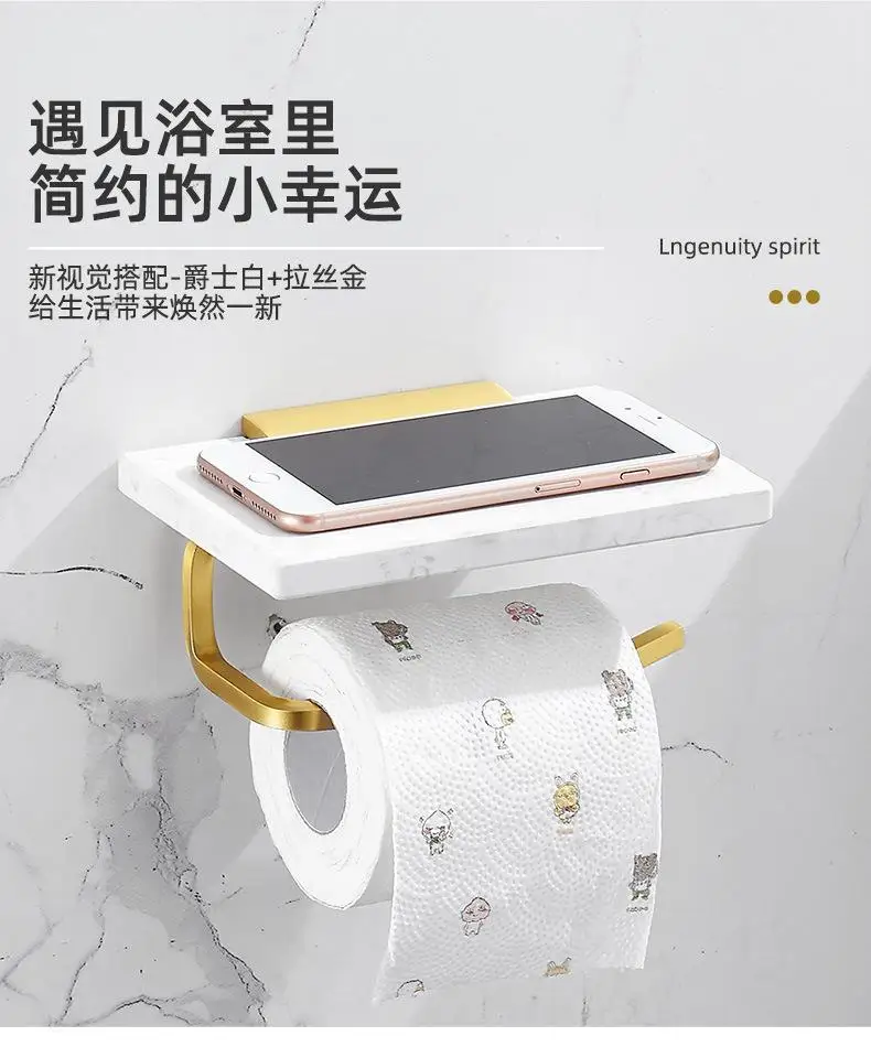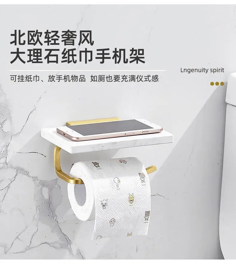 Набор аксессуаров для ванной комнаты, Золотая полка из матового материала, вешалка для полотенец, держатель для бумаги, держатель для туалетных щеток, мрамор и латунь