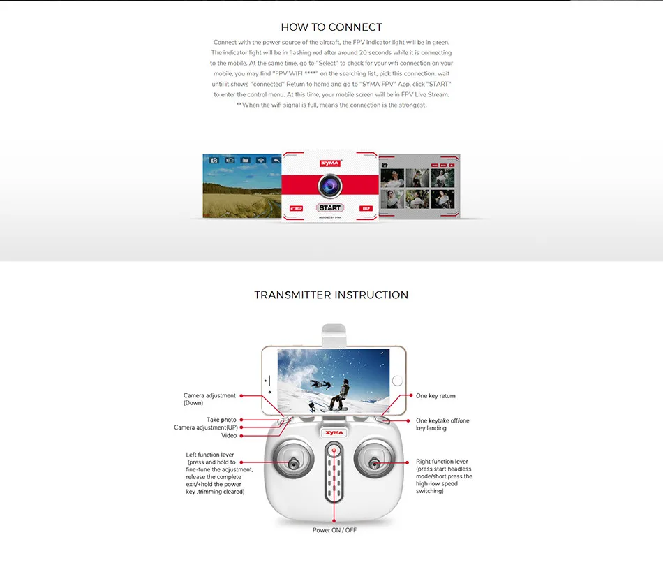 720P HD WIFI камера: может поворачиваться вверх и вниз беспроводным управлением, в противном случае, он может делать снимки, снимать видео, а также делать передачу в режиме реального времени.