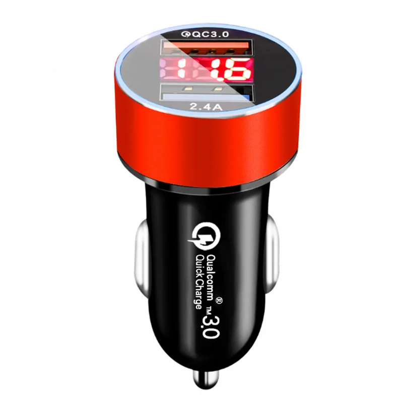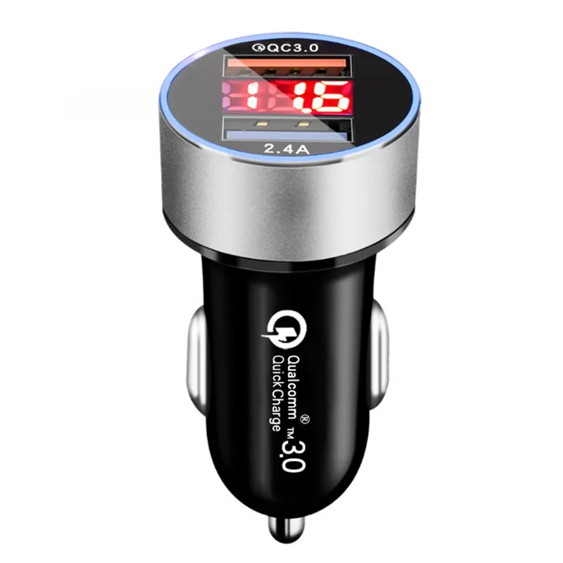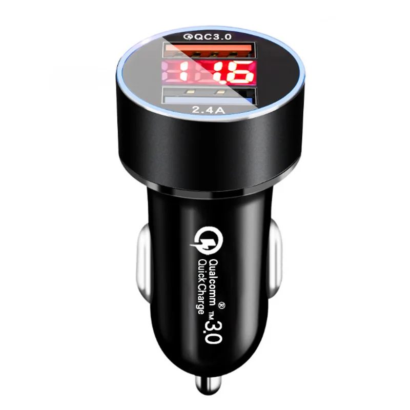 QC3.0 цифровой дисплей 18 Вт автомобильное зарядное устройство Быстрая зарядка + 2.4a двойной порт USB автомобильная зарядка