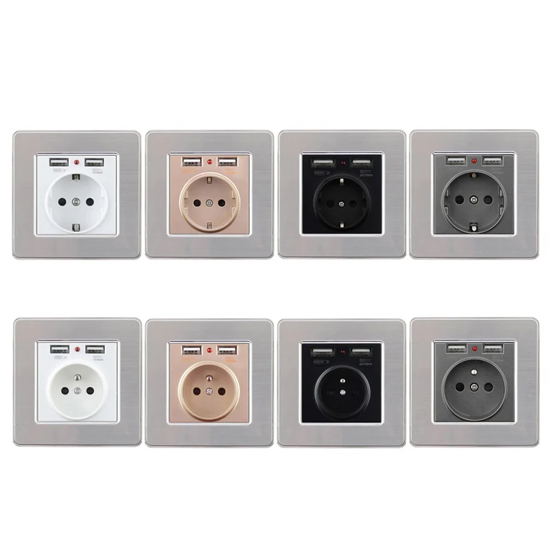 Настенная розетка с двойным USB-портом, 86 мм х 86 мм, 16 А, 110 250 В