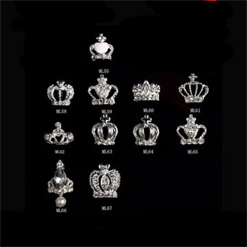 10 шт.лот 3D украшения для дизайна ногтей Серебряная Золотая форма короны украшения для ногтей Сияющие Кристаллы Стразы аксессуары для ногтей