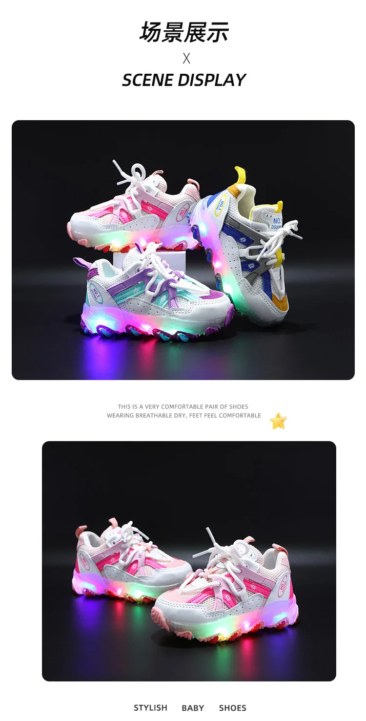 Детские светящиеся кроссовки со светодиодной подсветкой, размеры 21-30