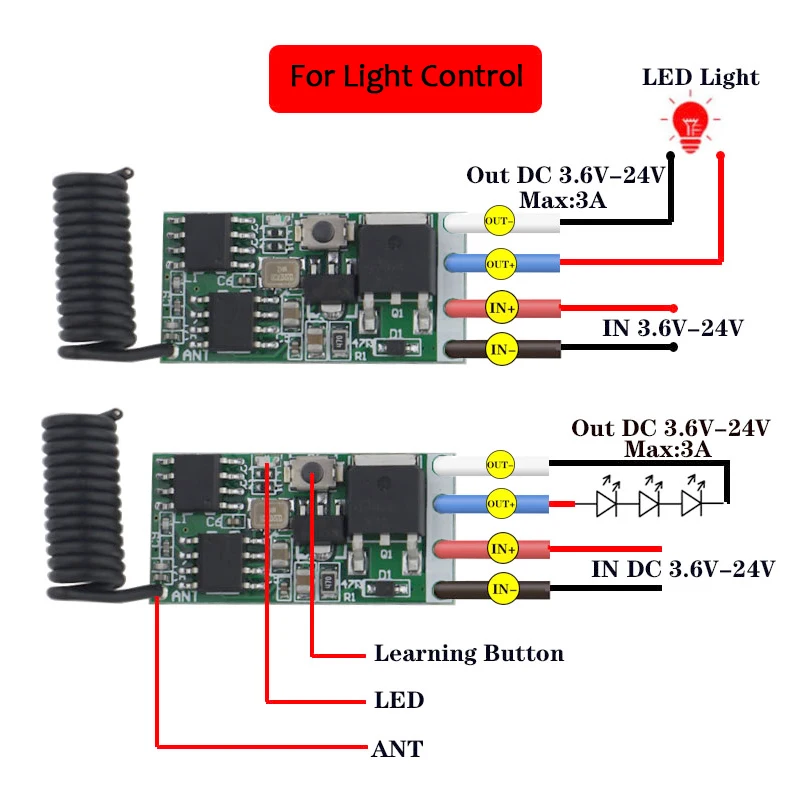 Номер модели3.6V 5V 9V 12V 24V 433 MHz Remote Control Switch