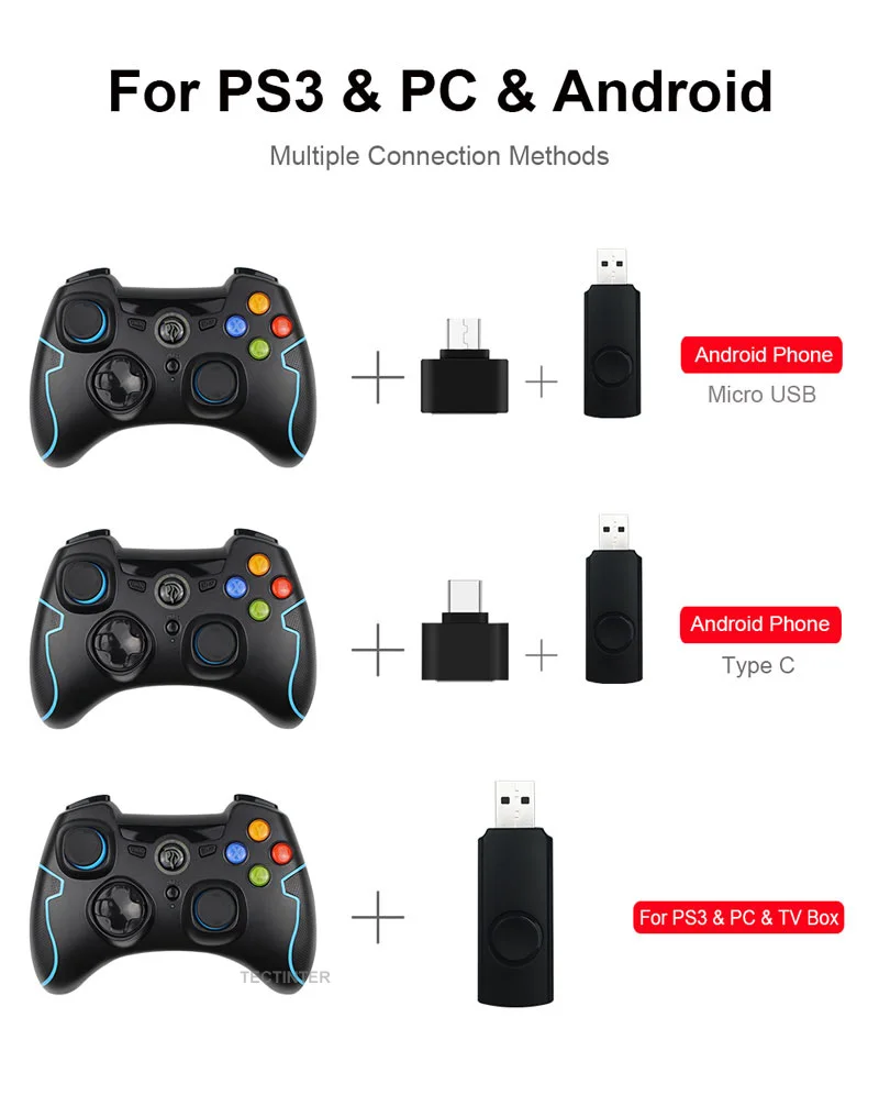 Для контроллера ps3, специально разработанного для использования с консолью PS3 с точной раскладкой, идеально подходит в качестве замены или дополнительного контроллера. Этот геймпад также поддержка для ПК, пожалуйста, обратите внимание на то, что вам нужно, чтобы использовать 2,4 GHz приемник!