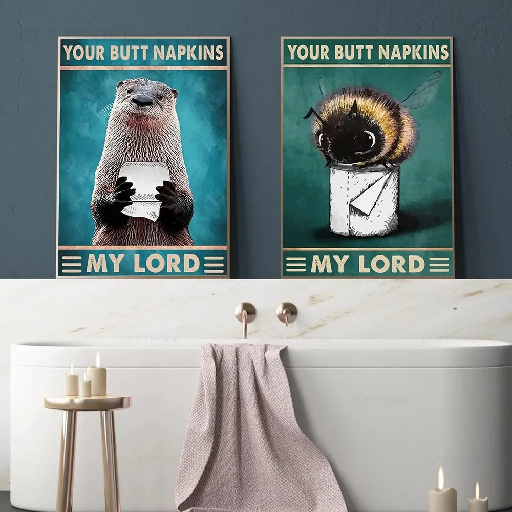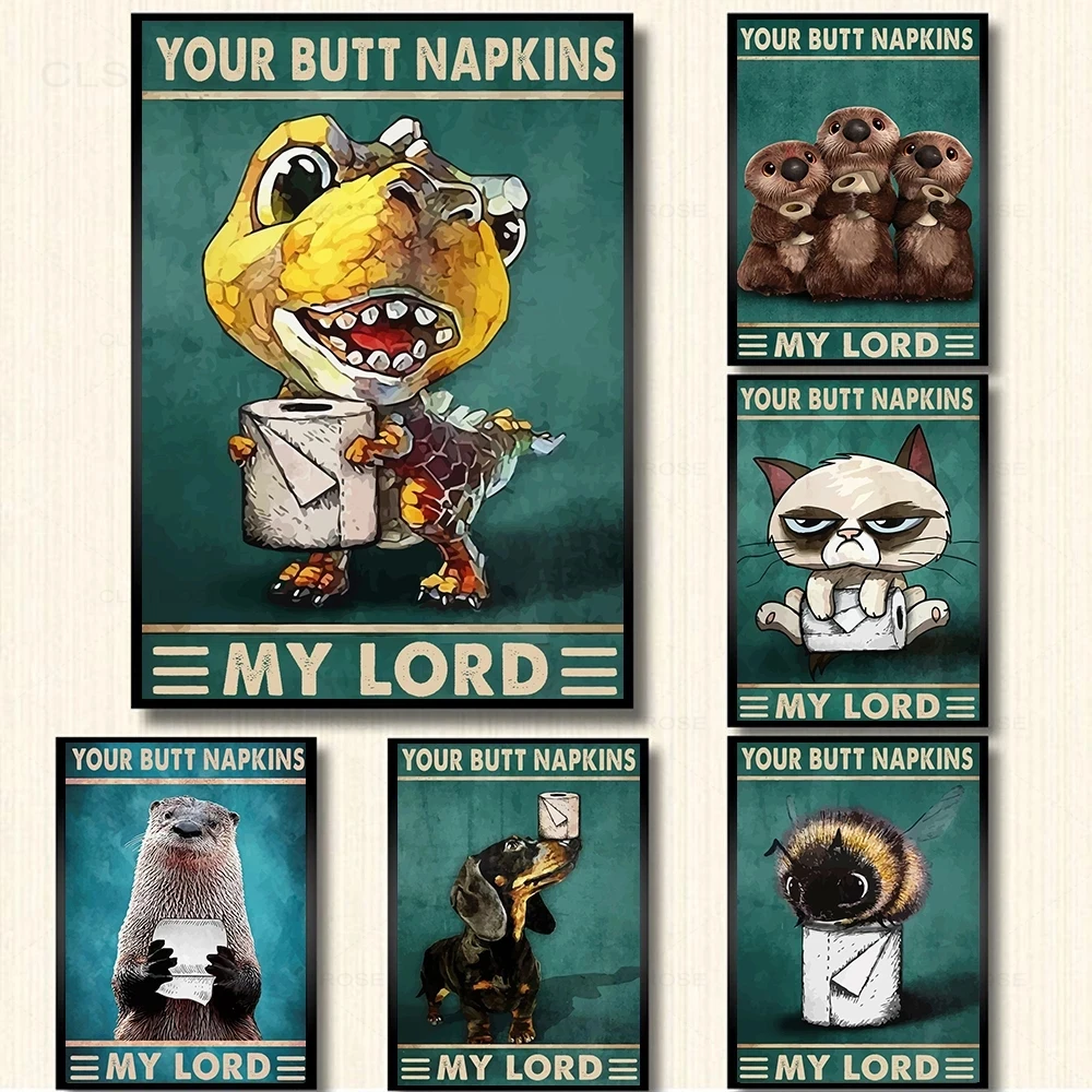 Забавные постеры и принты для ванной комнаты, салфетки с вашими ягодицами, мой Властелин, туалет, животные, пчела, собака, кошка, винтажное настенное искусство, холст, картина, декор