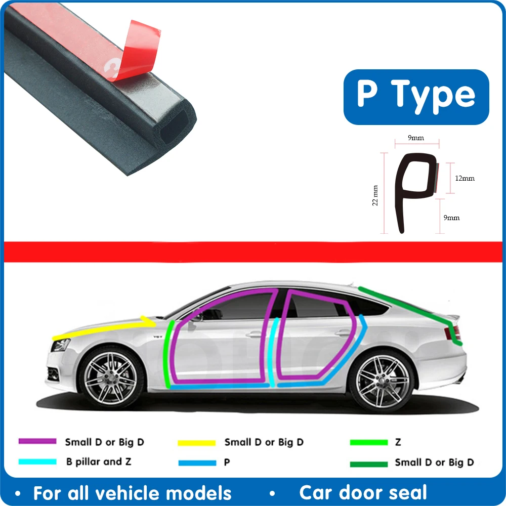 Самоклеящийся резиновый уплотнитель (P-профиль) - предназначен для устранения зазоров между дверьми или кузовом,путем дополнительной установки к штатным (заводским) уплотнителям передних и задних дверей или же крышки багажника.