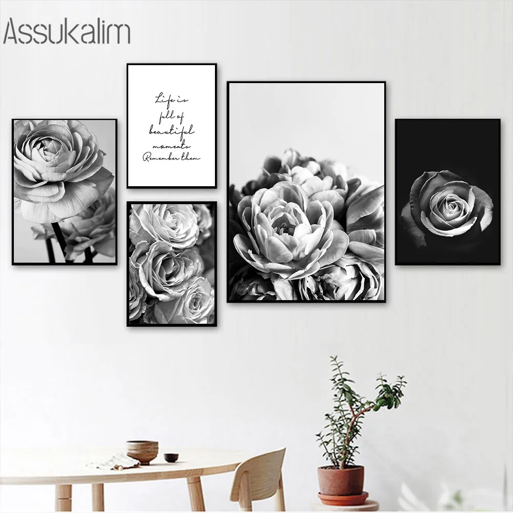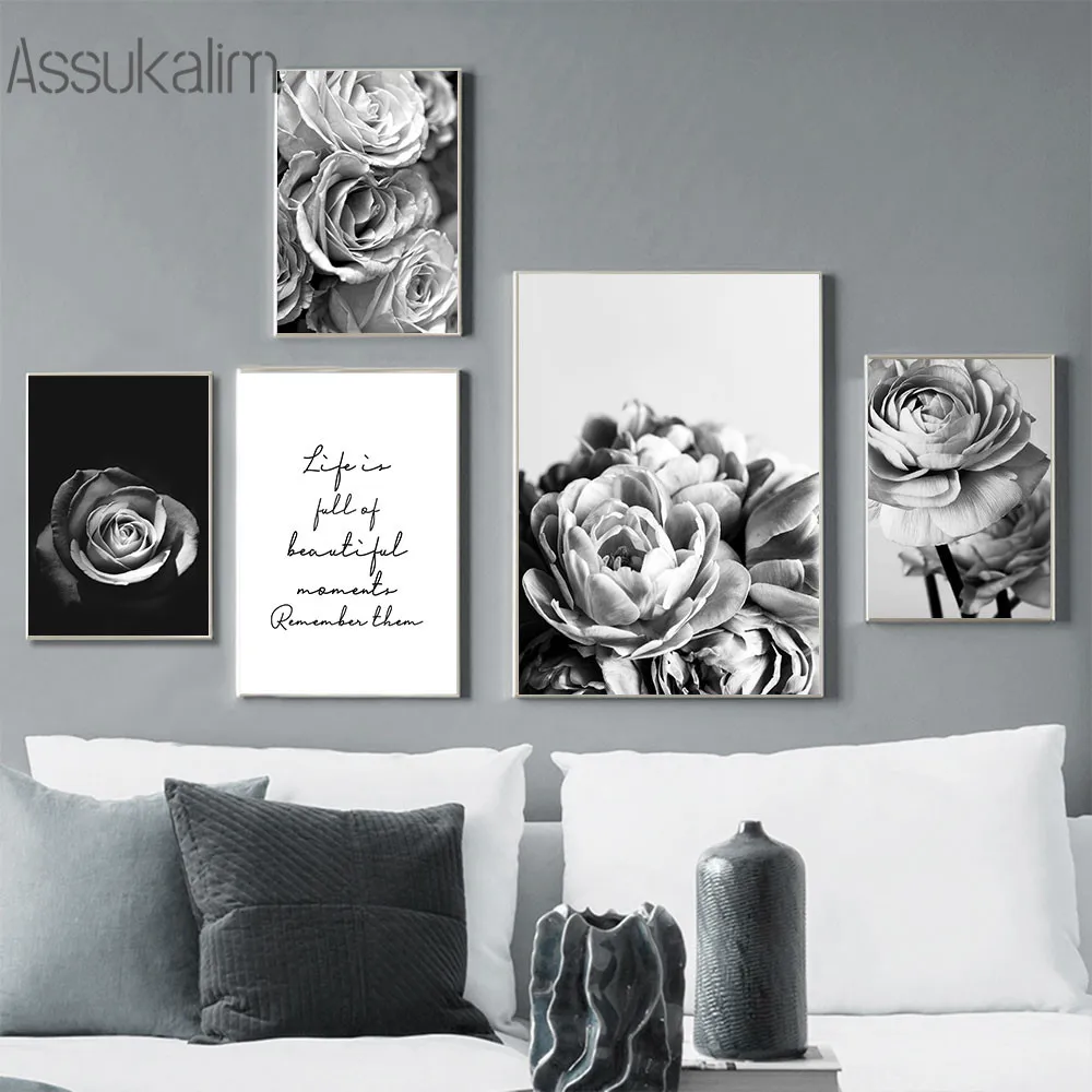 Черно-белая Картина на холсте цветок плакат пион художественные при...