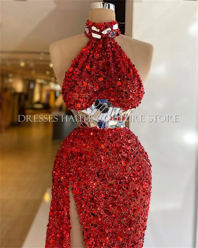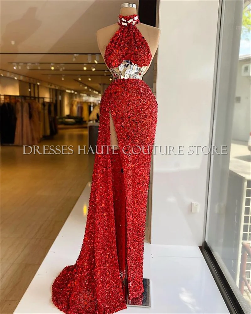 Женское вечернее платье-русалка, красное вечерние с высоким воротом, украшенное бисером, для выпускного вечера, 2021