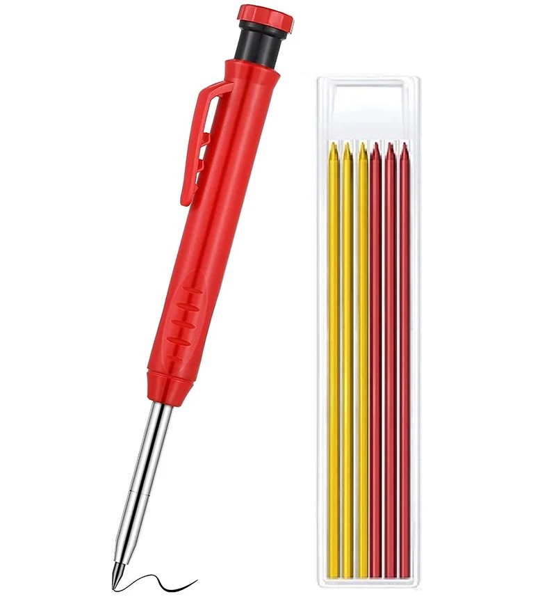 1. Устройство для изготовления глубоких отверстий: карандаш для плотника с глубоким отверстием разработан с удлиненным наконечником 45 мм в длину, достигая труднодоступных мест, где другие маркер плотника не идут, подходит для маркировки через отверстия или в других плотных областях