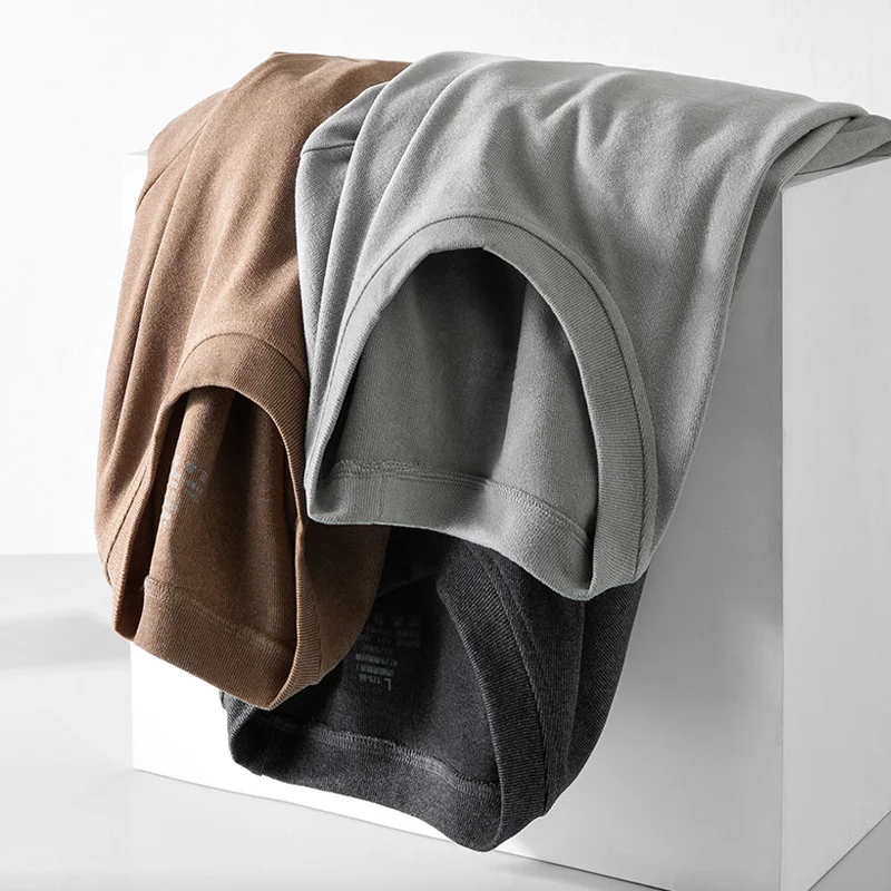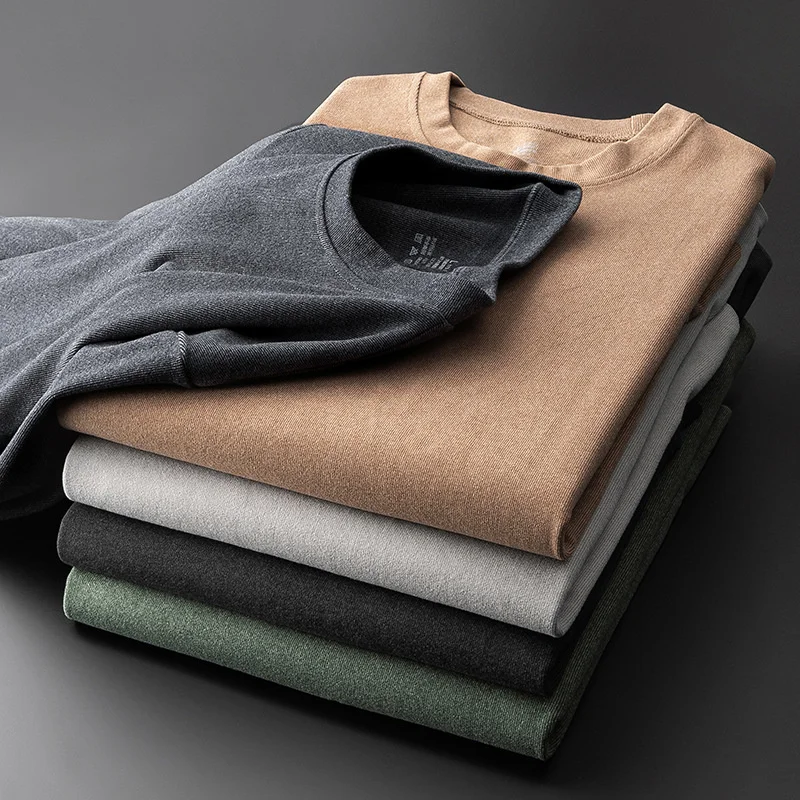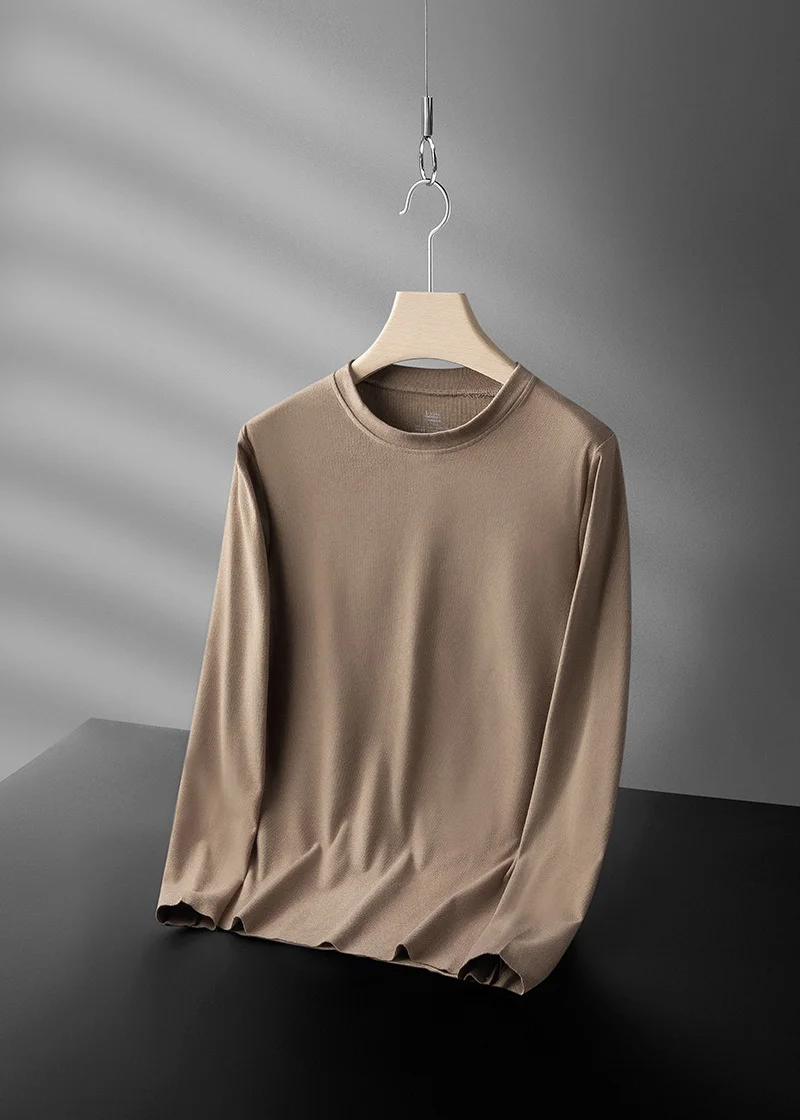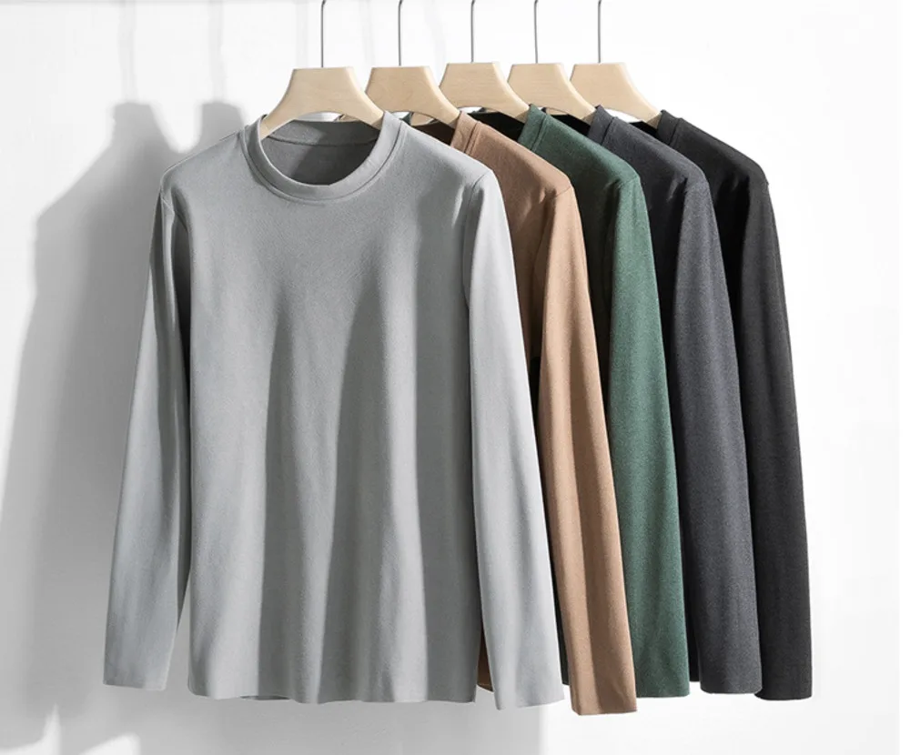 Футболка мужская, с длинным рукавом, флисовая, однотонная, Осень-зима
