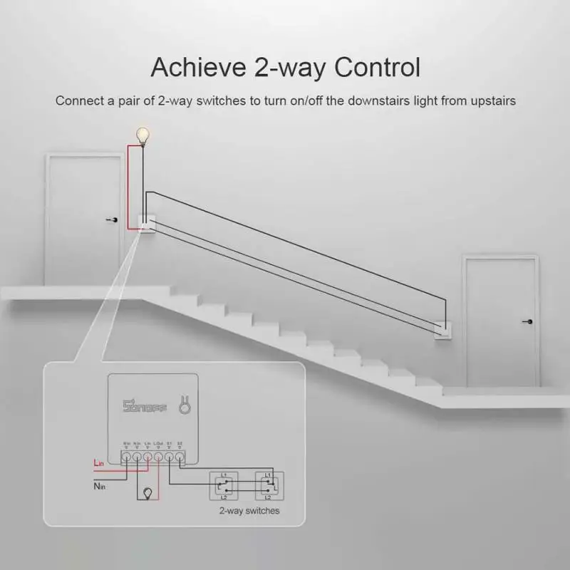 Умный мини-выключатель SONOFF MINIR2, Wi-Fi, работа с Alexa, Google Home, двухстороннее управление, таймер, беспроводной умный выключатель света для приложения EWelink