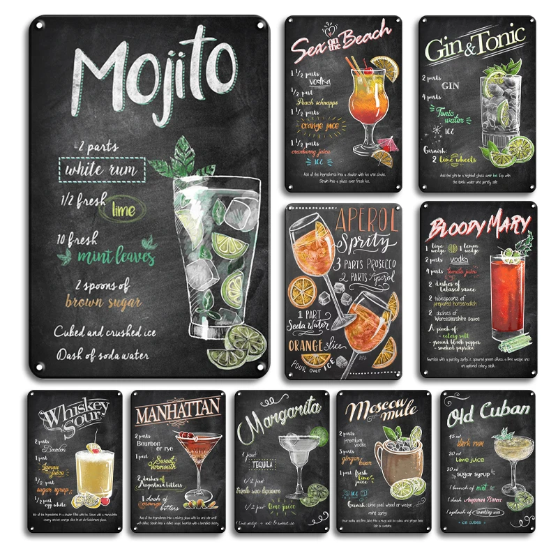 Винтажная металлическая вывеска для коктейлей, жестяная ретро-пласт...