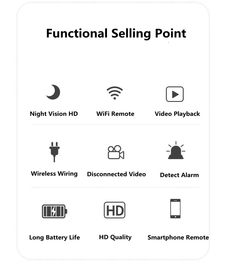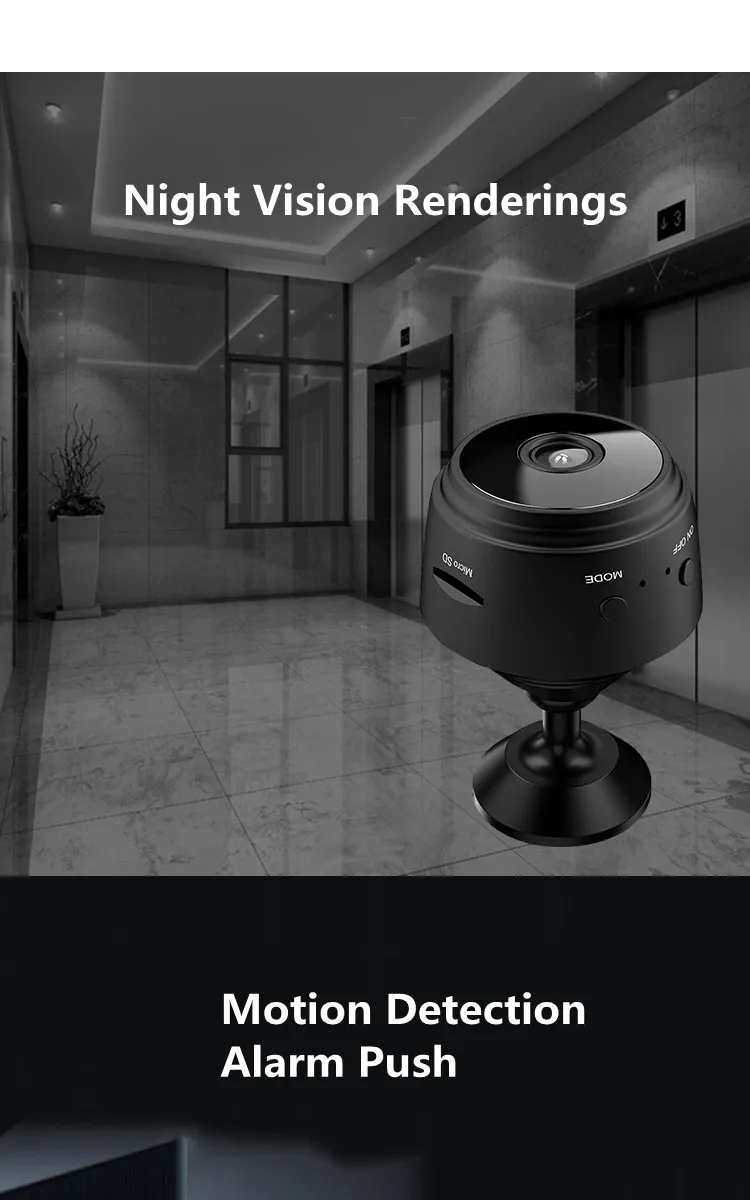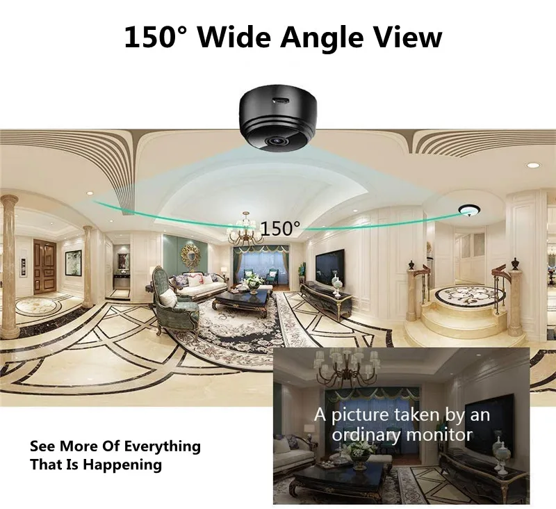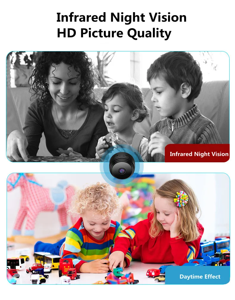 Маленькая мини-камера записывает видео в исключительных 1920x1080P HD при 30 кадрах в секунду. Функция с видео, картинкой, циклической записью, детективом движения, инфракрасным ночным видением, отображением времени, магнитным и т. д. Камера с широкоугольным обзором 150 °, которая может контролировать в любом месте на стандартном расстоянии.