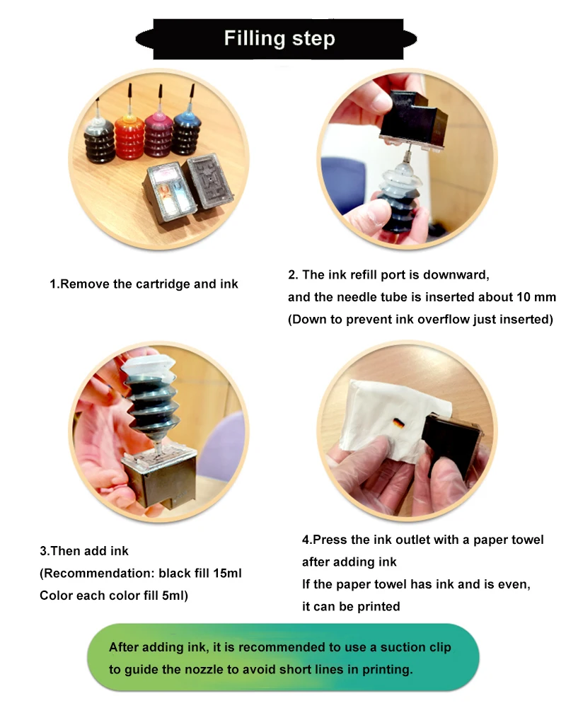 4) Могут ли многоразовые чернила?Мы не предлагаем клиентам заправку чернил, потому что заправка чернил после картриджа внутри легко происходит воздух и не может печатать (или поврежденный чип картриджа)