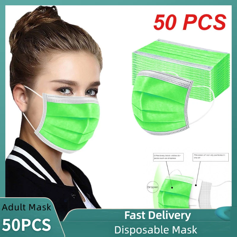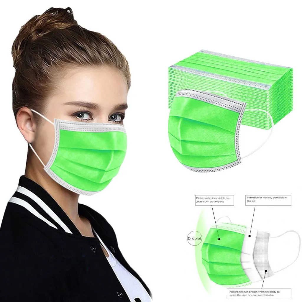 Зеленая одноразовая маска для лица, 50 шт., 3-слойная многоразовая ...