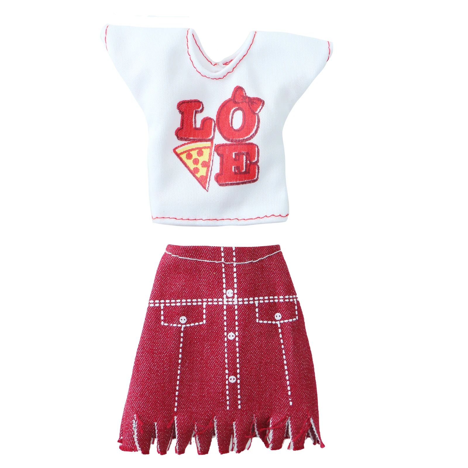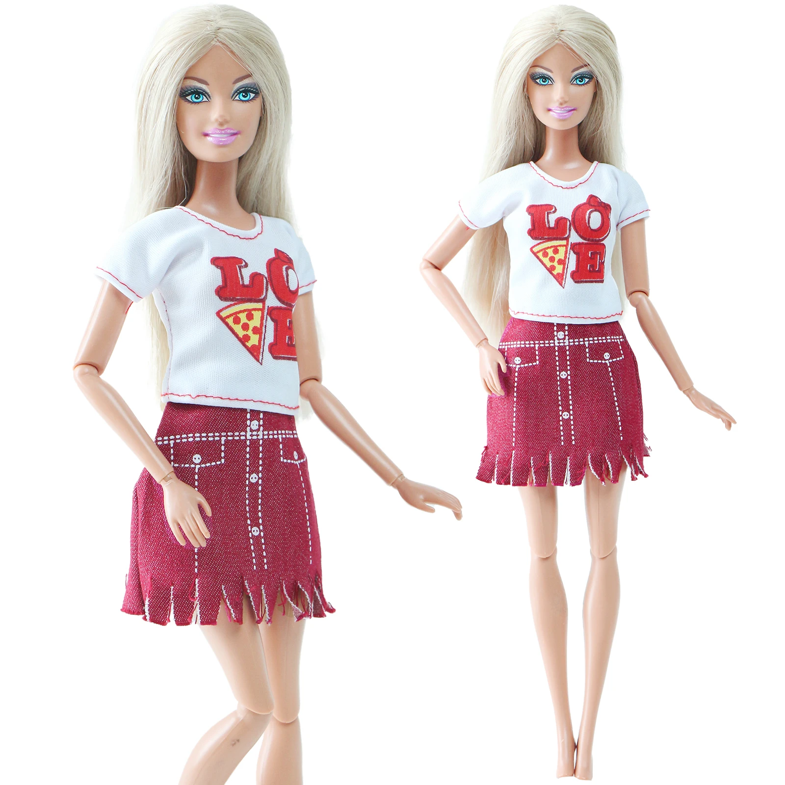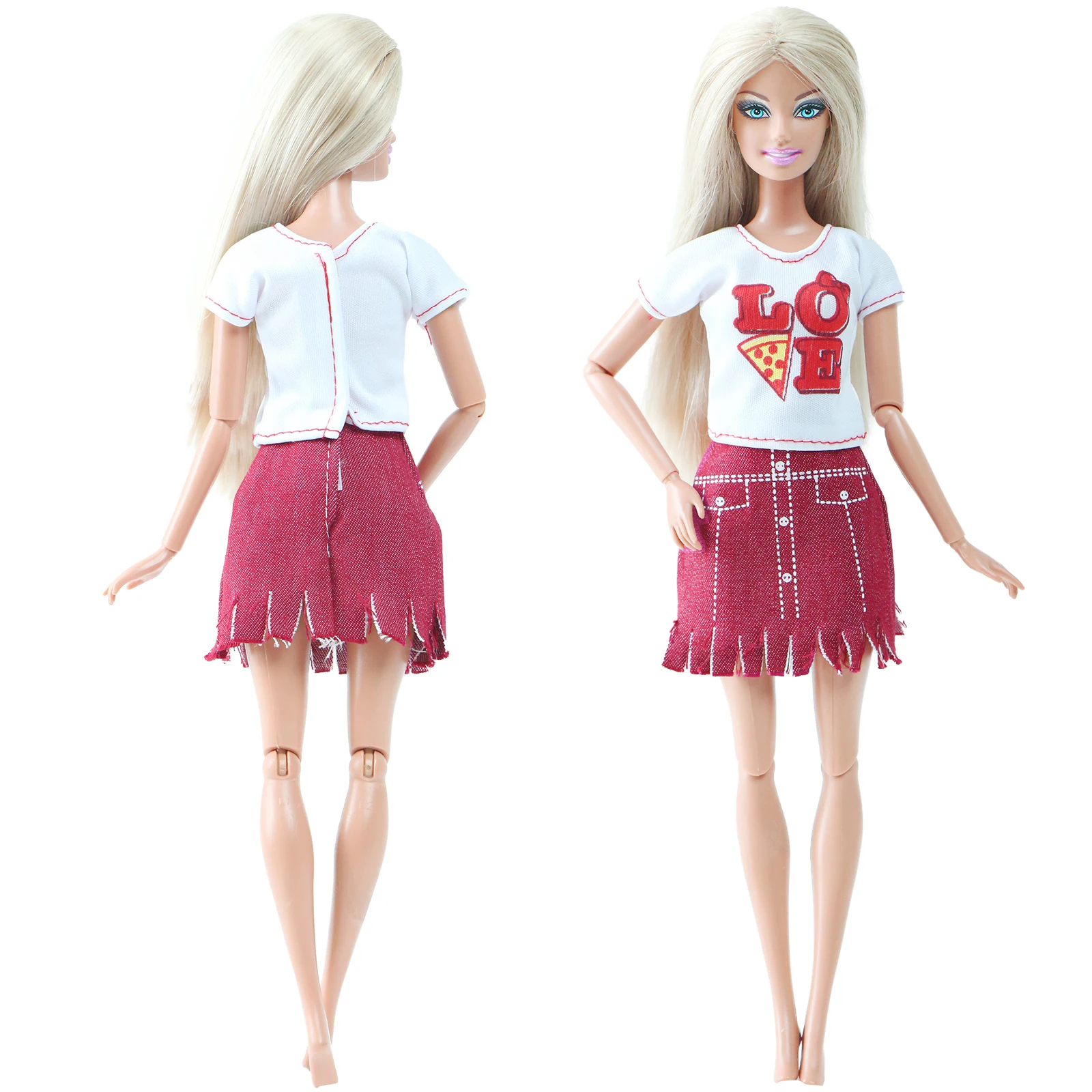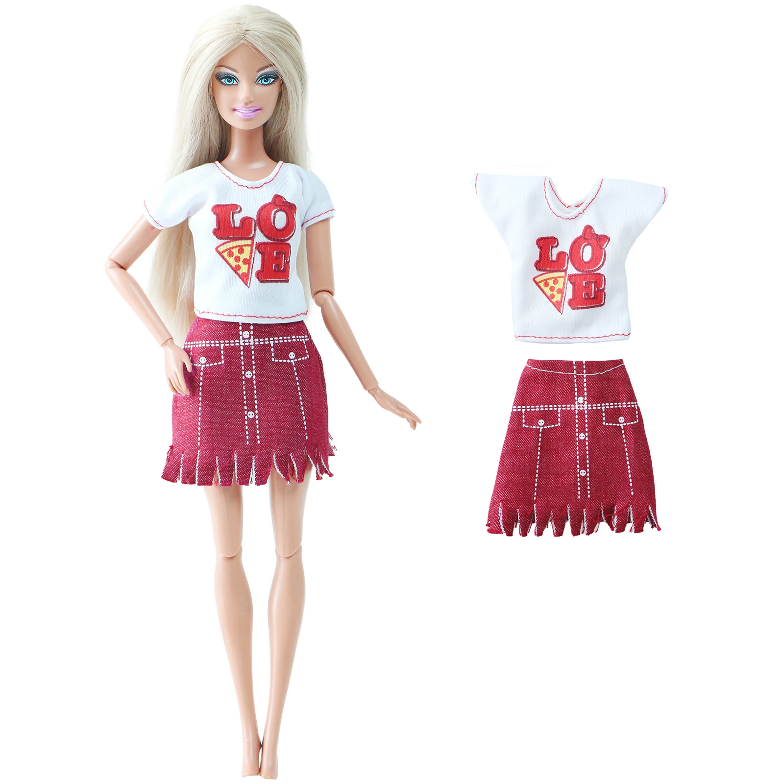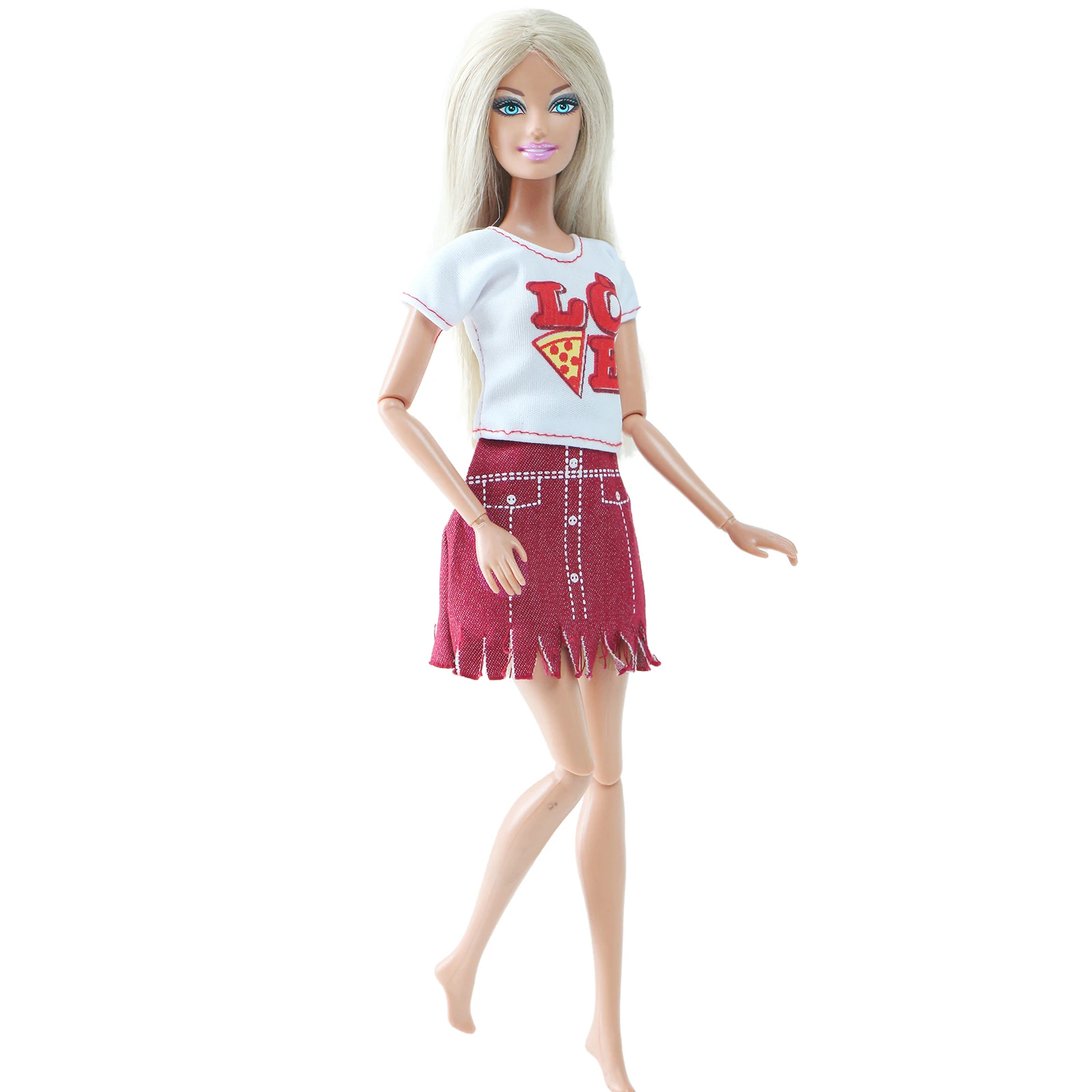 1 комплект, Кукольное платье BJDBUS, футболка с надписью, короткая красная юбка, повседневная одежда для вечеринки, Одежда для куклы Барби, аксессуары для девочек, игрушки для дома