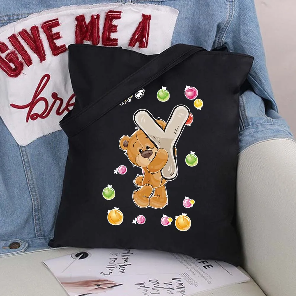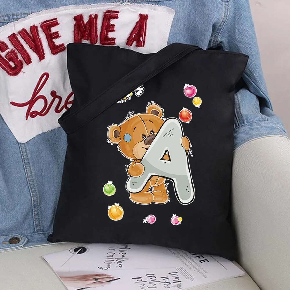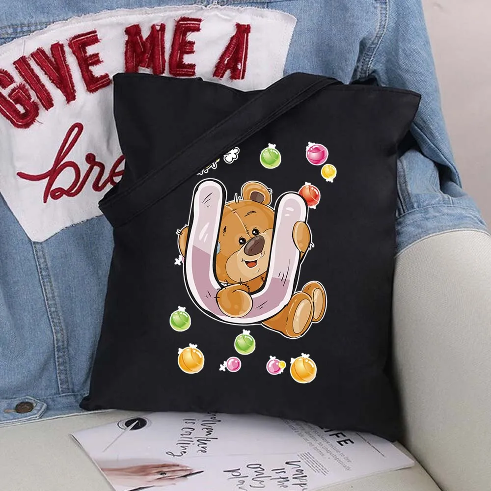 Сумка шоппер Harajuku женская, большая вместительность, Классическая винтажная сумка через плечо, сумка-тоут с изображением мишки, Женская парусиновая сумка
