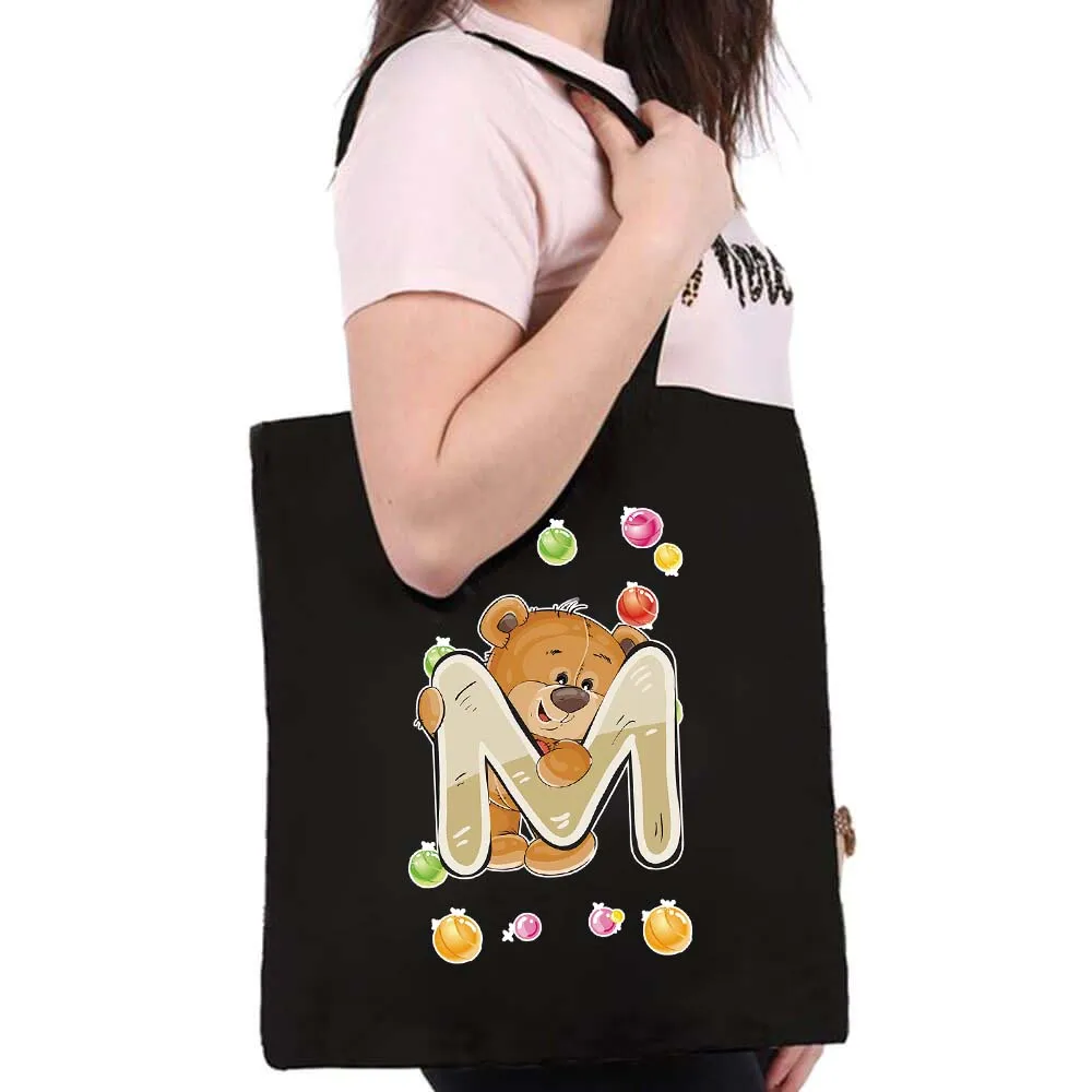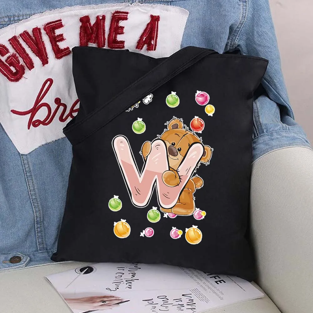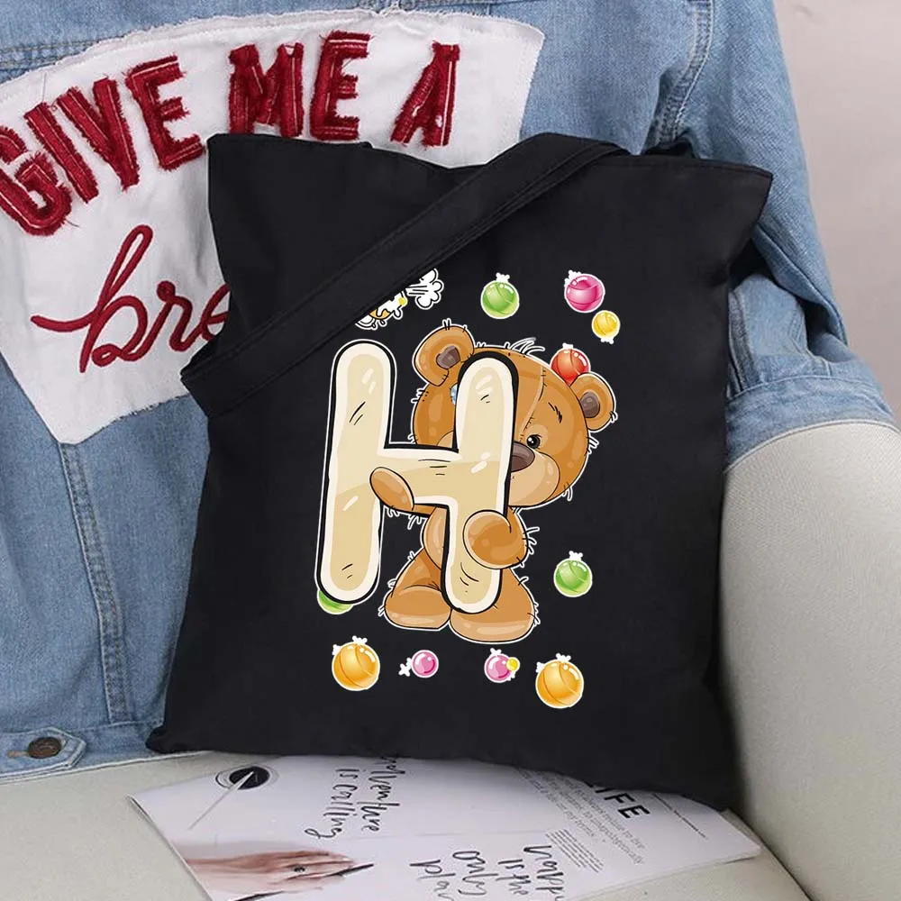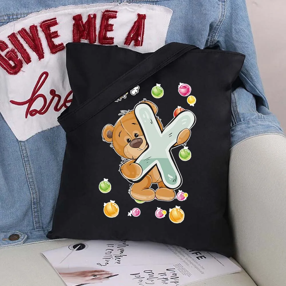 Сумка шоппер Harajuku женская, большая вместительность, Классическая винтажная сумка через плечо, сумка-тоут с изображением мишки, Женская парусиновая сумка