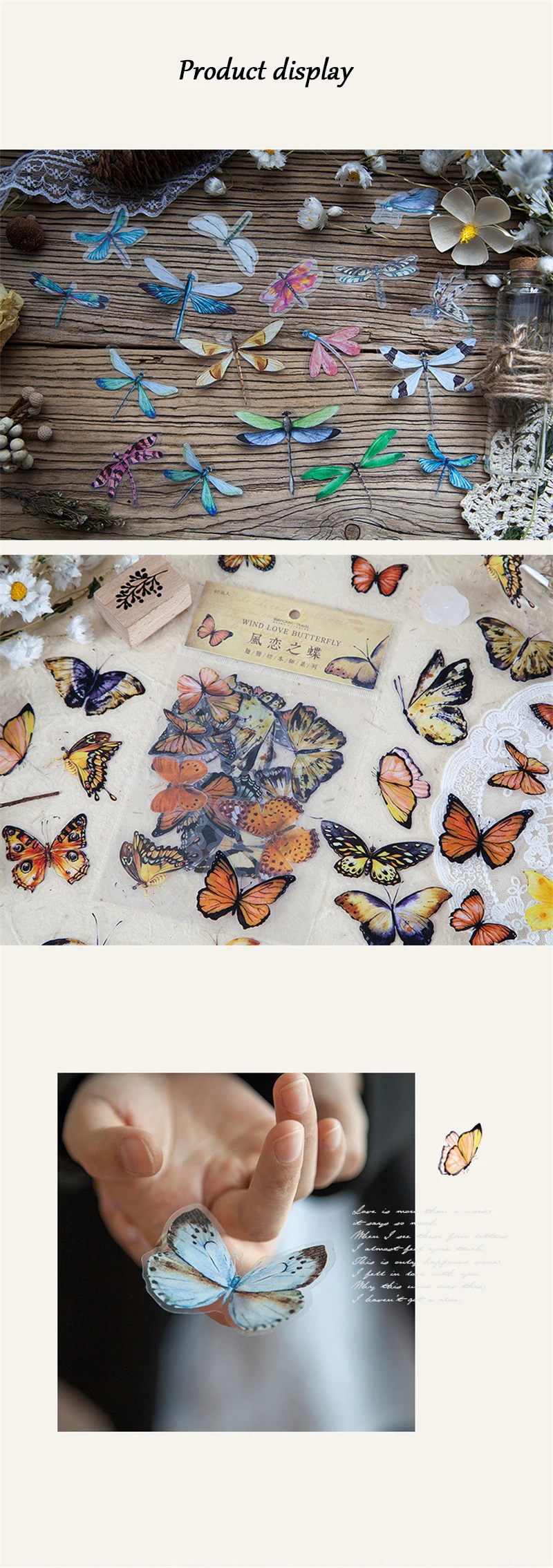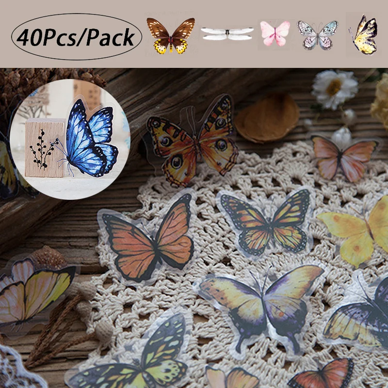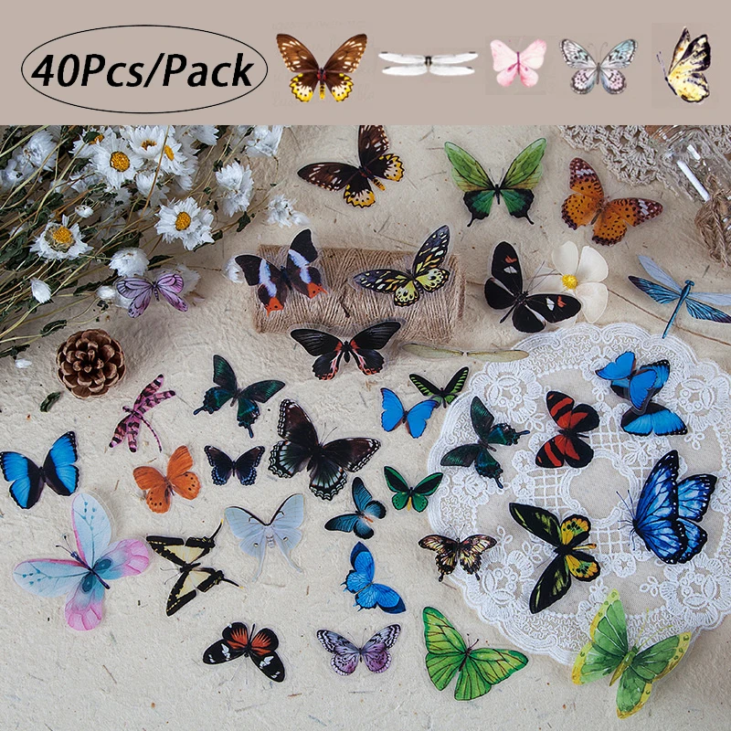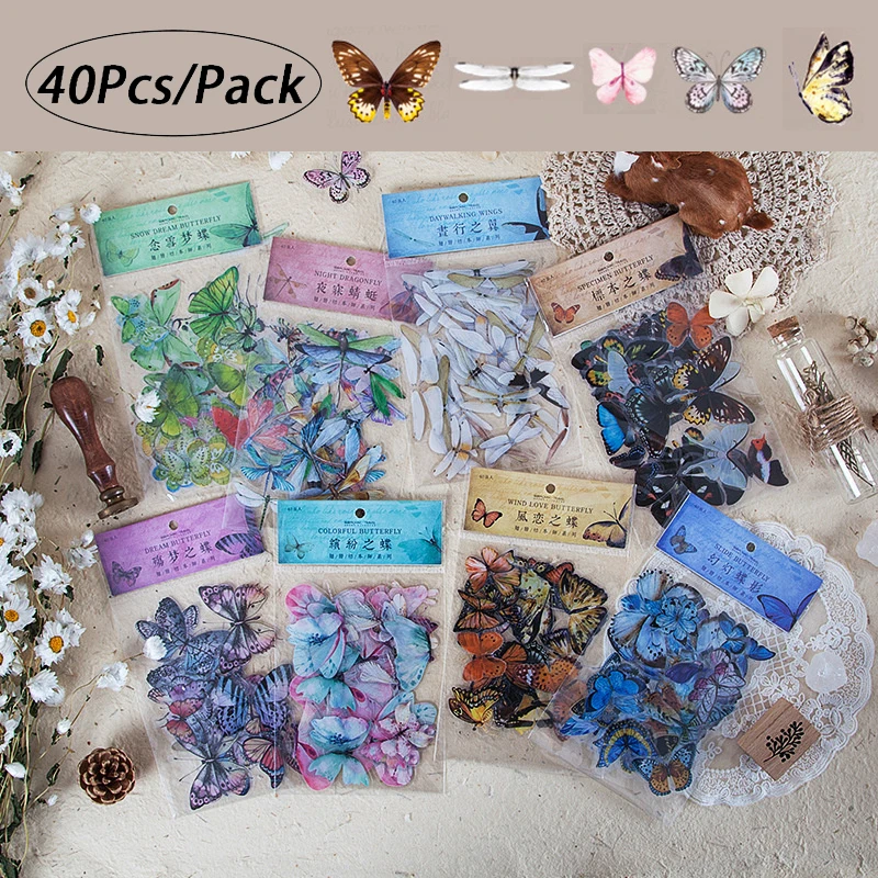 1 упаковка (40 шт. наклеек) красочные наклейки в виде бабочки и стрекозы, наклейки для образцов домашних животных, декоративные настенные наклейки для книг и альбомов