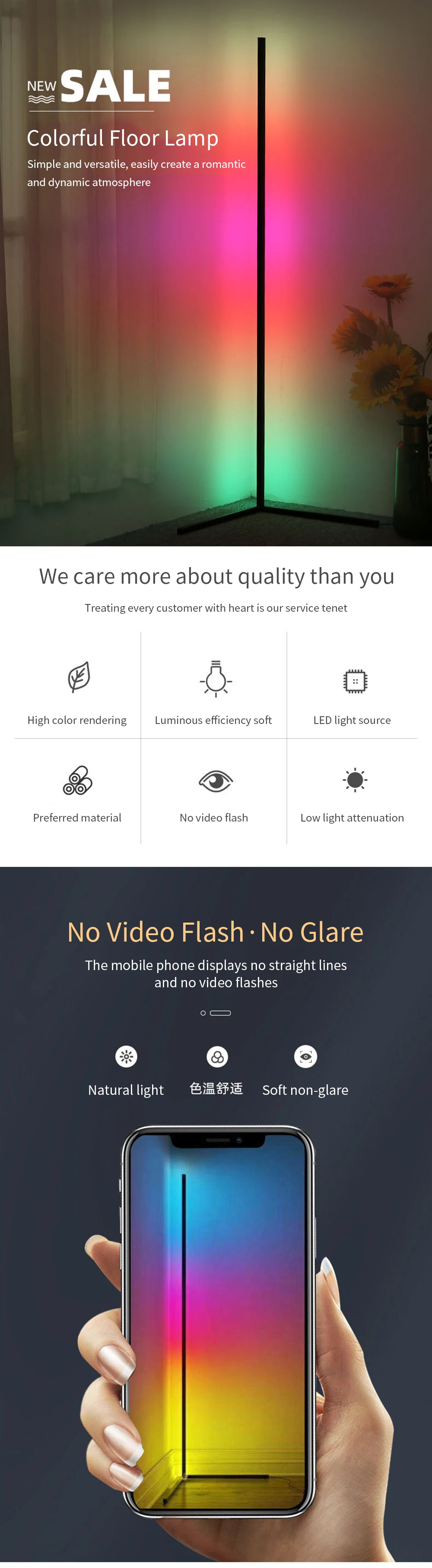 Светодиодная Напольная Лампа DimmingRGB, комнатное украшение для сп...