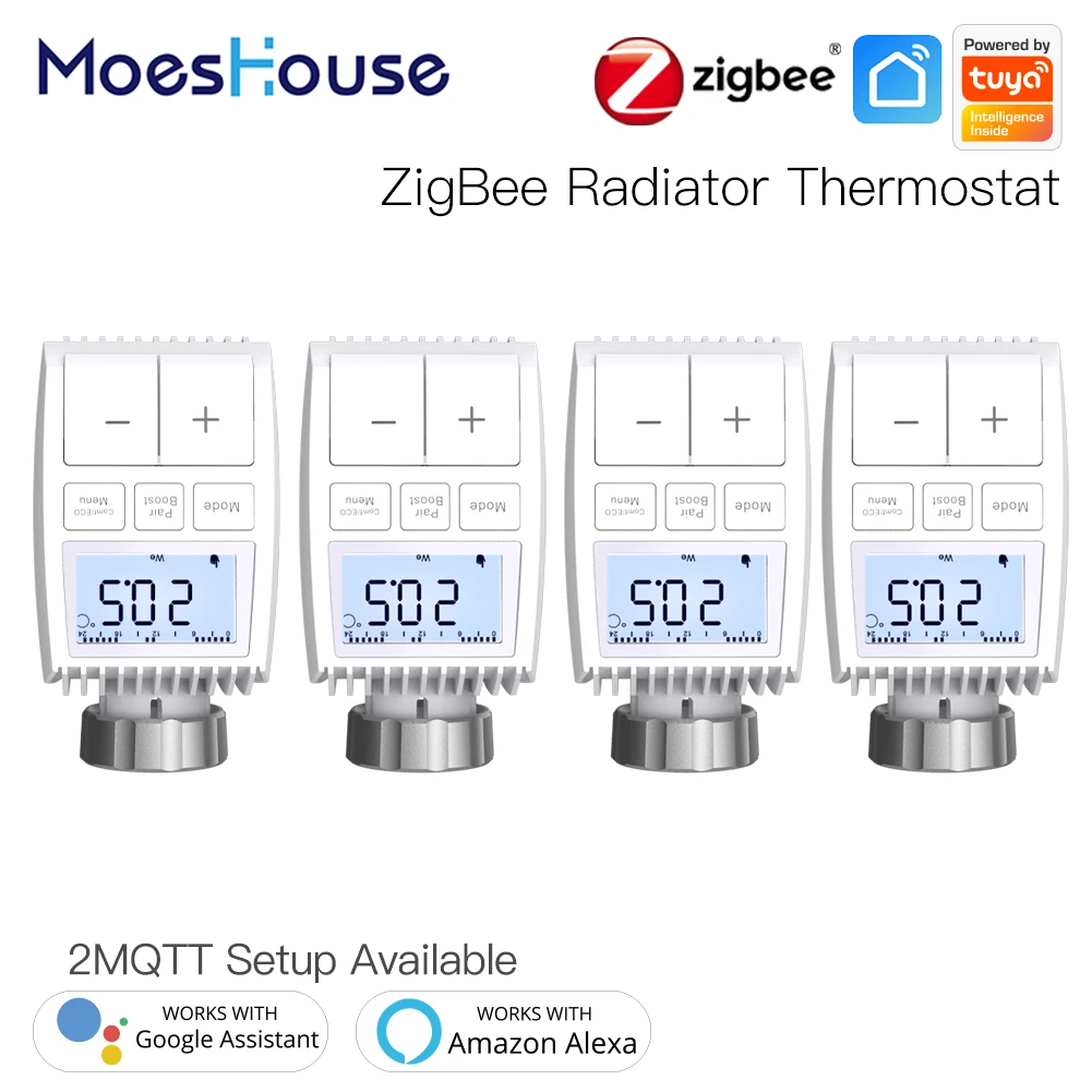 Клапан привода радиатора MoesHouse ZigBee 3,0, умный термостат, контроль температуры, внешний датчик TRV, голосовое управление, Alexa