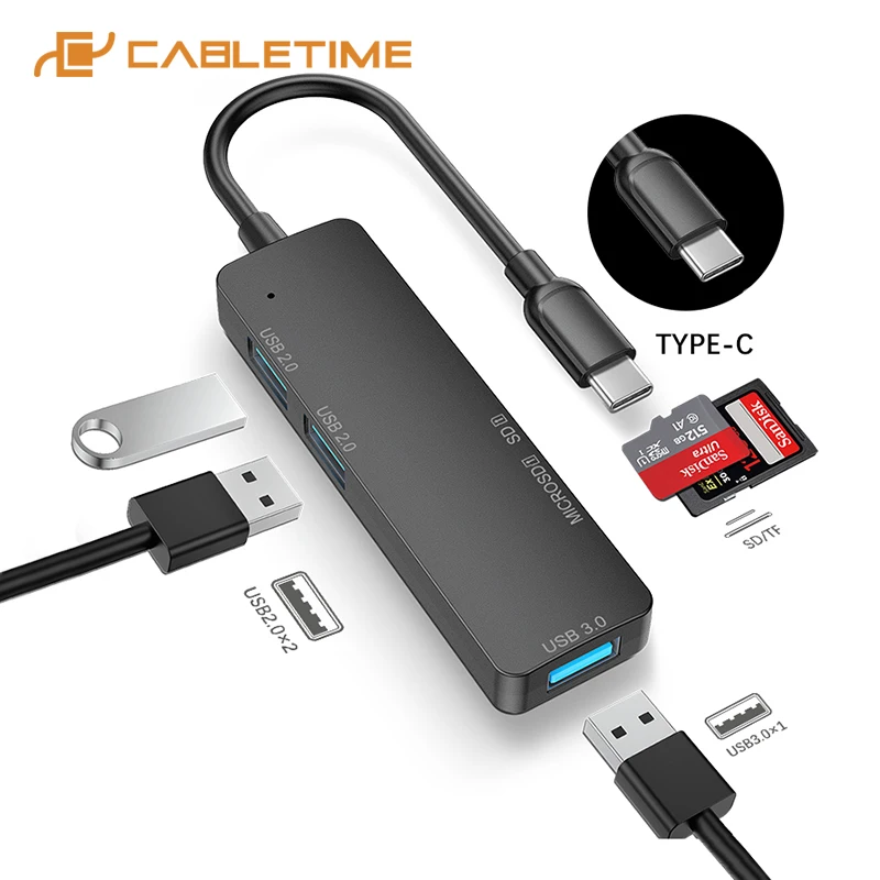 USB-концентратор CABLETIME 5 в 1, USB 3,0, 5 Гбитс, для быстрой пер...
