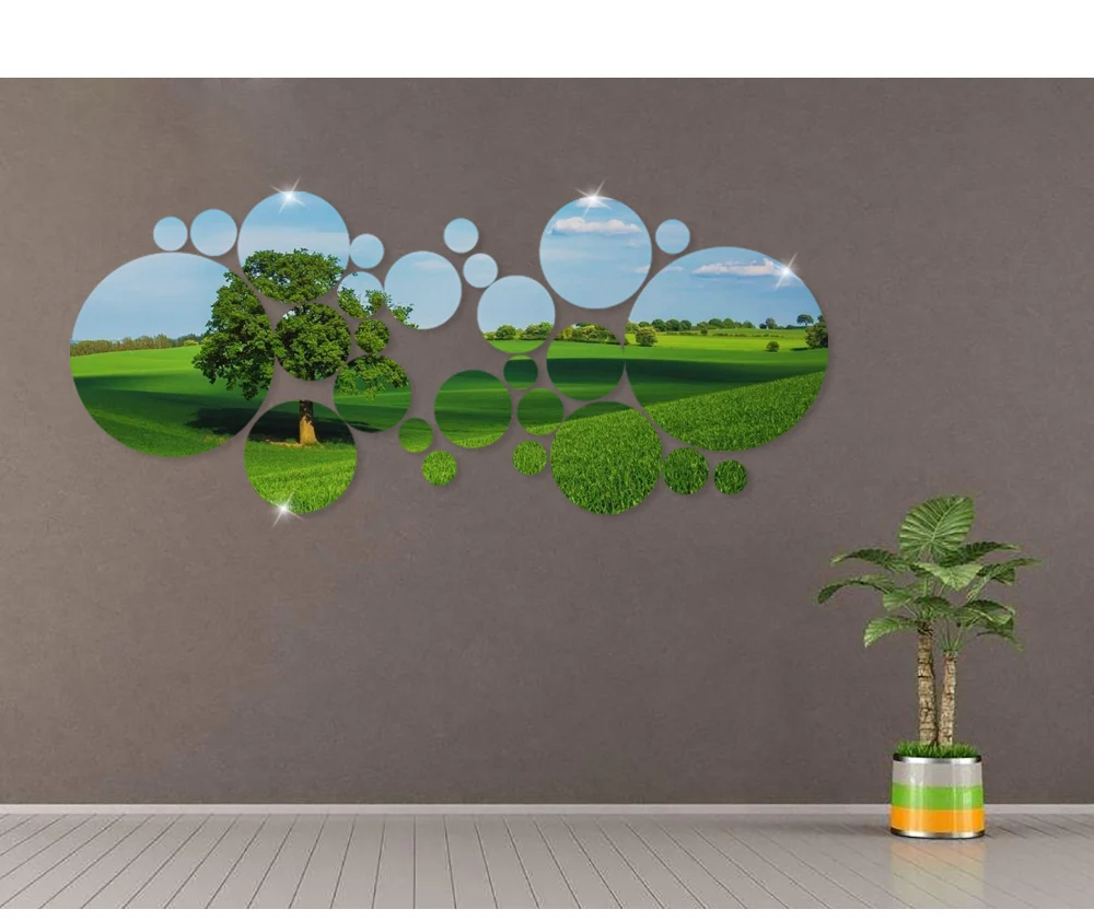 28 шт., зеркальные настенные наклейки круглой формы