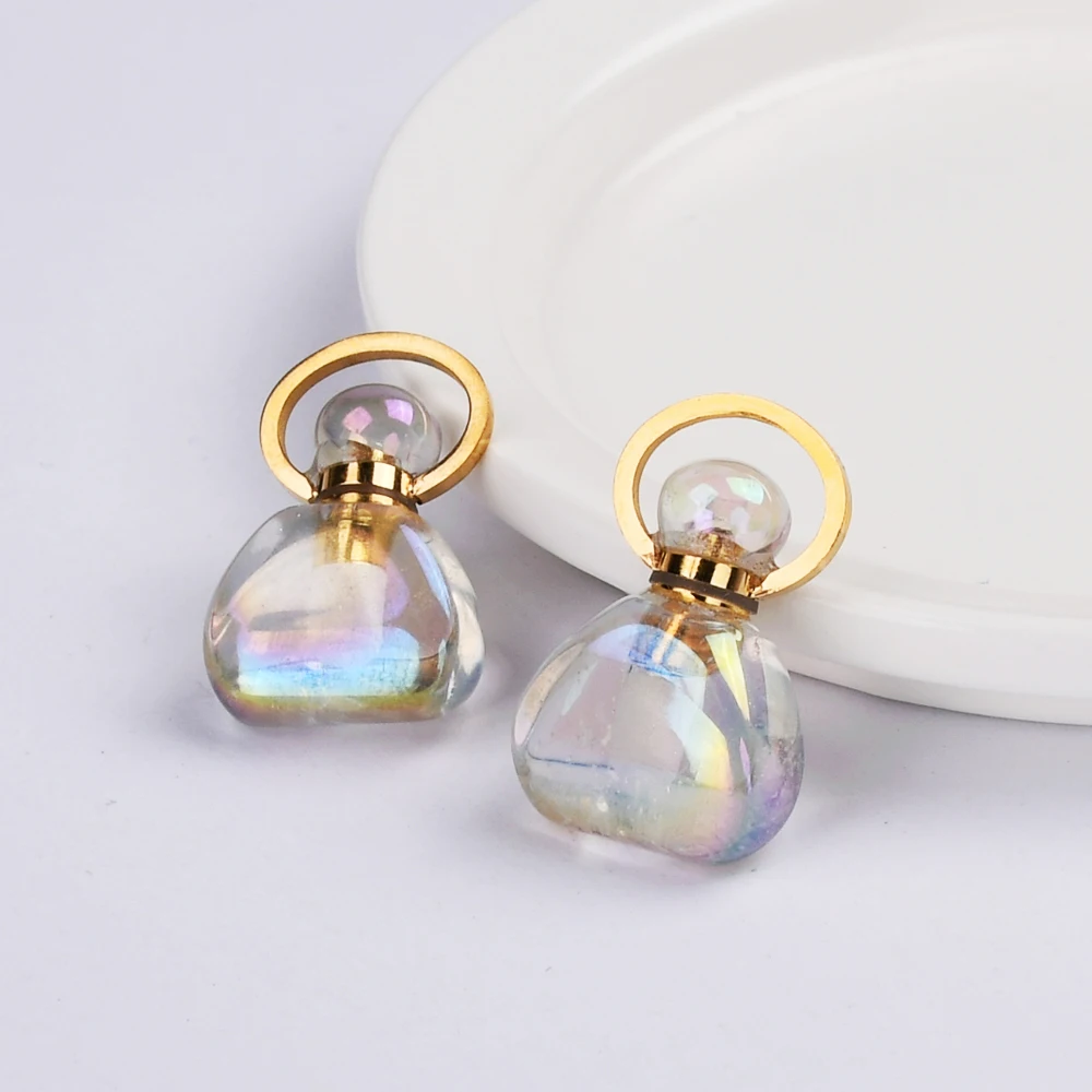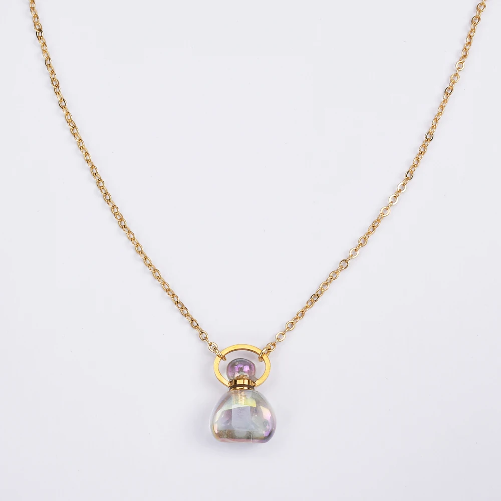 Позолоченный кристалл Aura, белый кварцевый флакон для духов, рассеиватель, ожерелье, флакон для эфирного масла ожерелье с кулоном-диффузором для женщин