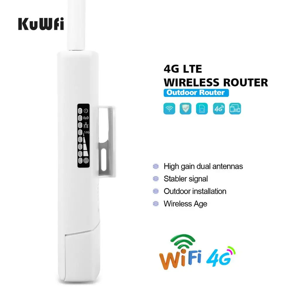 1,150 Мбит/с Wi-Fi роутер наружный 4G CPE роутер с 2 шт внешней антенны высокого усиления для достижения усиления сигнала LTE.2. 4g маршрутизатор разработан с водонепроницаемым и Молниеносным корпусом помогает устройству хорошо использоваться на открытом воздухе без широкополосного доступа3.KuWFi Открытый водонепроницаемый 4G CPE маршрутизатор использовать MTK чипсет MT6735WM.4. Наружное расстояние Wi-Fi: 10-50 м, Поддержка максимум 10 пользователей, спасибо!5. При получении доступа к Интернету через ethernet кабель; получить доступ к Интернету через 4G/3G/2G получить доступ к Интернету, вставив sim-карту и Подключаясь к устройству (режим SIM 4G должен подтвердить, что частота LTE поддерживается и APN правильно ли указан)6. Двойная высокоскоростная антенна-Внешняя антенна * 2 (одна для wifi, одна для основной антенны LTE), Внутренняя антенна разнесения LTE. Скорость передачи Wi-Fi: до 150 Мбит/с. Поддержка светодиодный индикатор