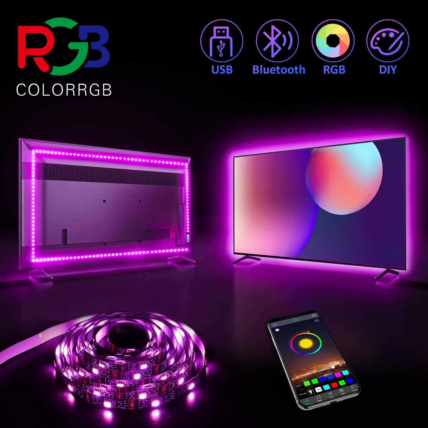 Светодиодная лента с питанием от USB, совместимая с Bluetooth, ленты с дистанционным управлением, RGB 2835, меняющая цвет, светодиодная подсветильник ка для телевизора, для домашнего декора