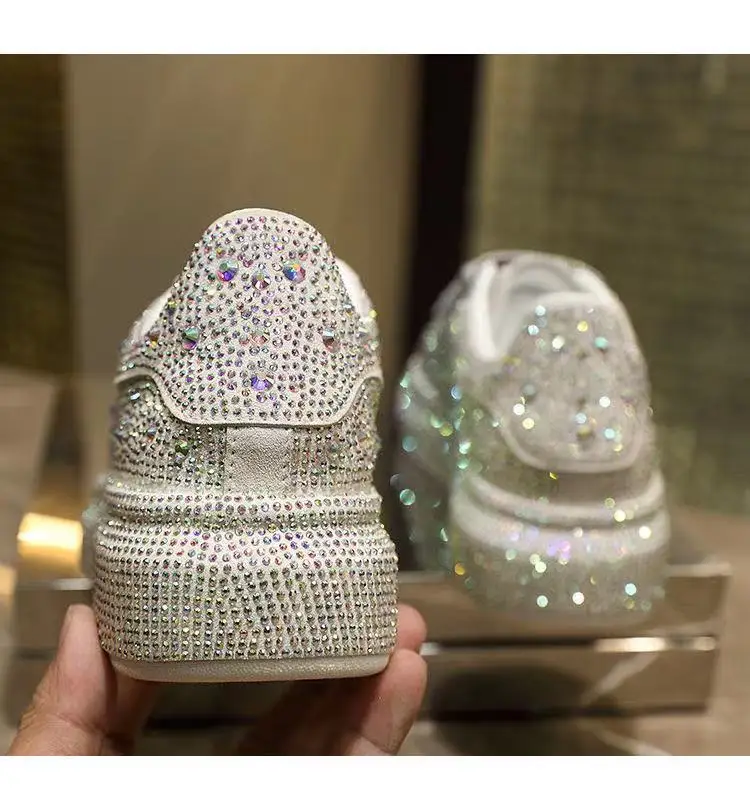Женские кроссовки со стразами, белые кроссовки на платформе, осень 2022