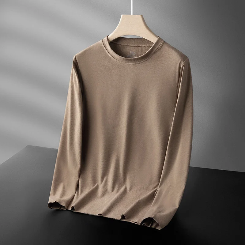 Зимнее термобелье, Мужская облегающая одежда с длинным рукавом, Мужская теплая нательная рубашка с круглым вырезом, простые мягкие коричневые и серые топы, футболки 2021