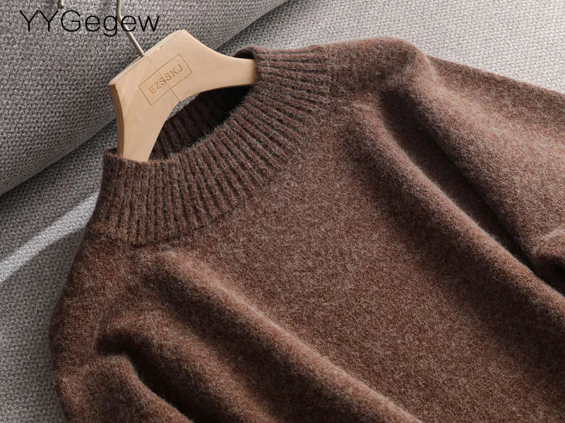 Женский кашемировый свитер с длинным рукавом и круглым вырезом