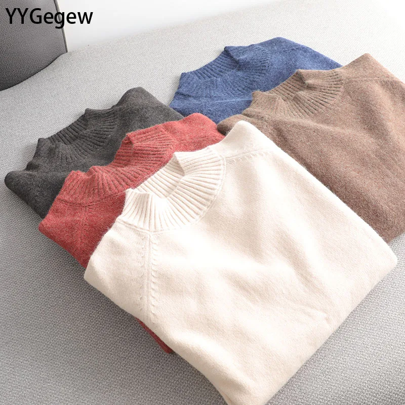 Свитер женский, кашемировый, с длинным рукавом и высокой горловиной