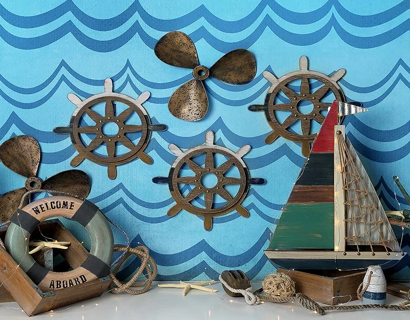 Якорь Морской фон для фотосъемки мальчика темно-синего цвета пиратс...